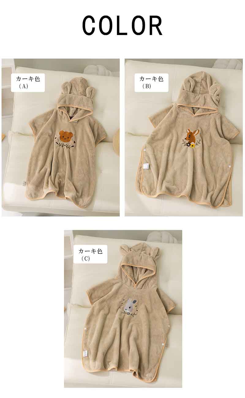 ベビーバスローブ フード付き 3色選べ ベビー ベビー服 ファッション 下着 パジャマ バスローブ 豊富な品揃え カーキ色(A) カーキ色(B) カーキ色(C)