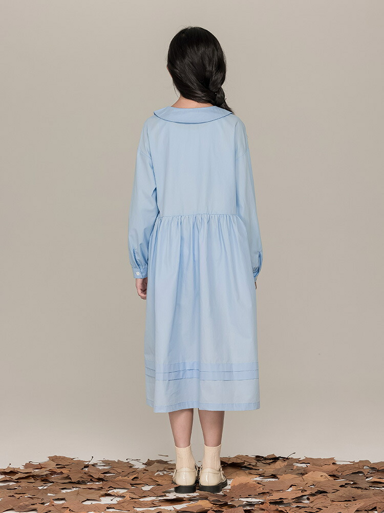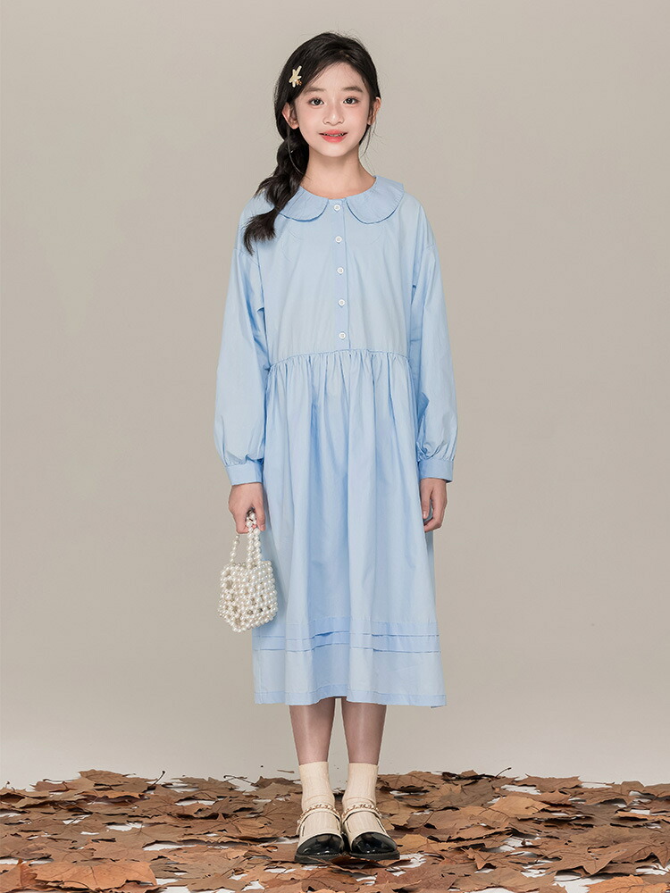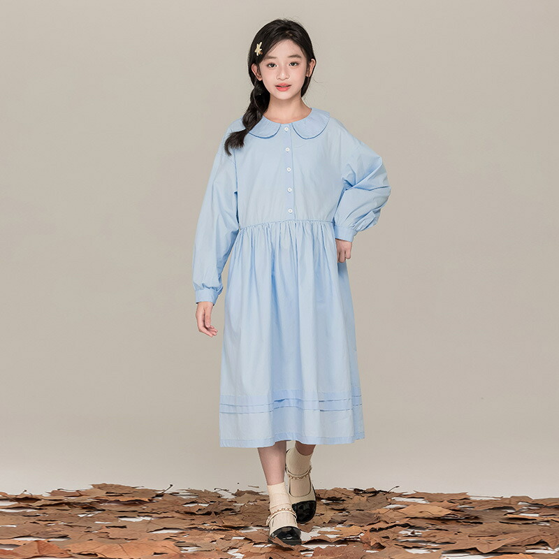 女の子 ワンピース 長袖 160 綿 キッズ 水色 白 春 秋 コットン 膝下 ゆったり 親子 子供服 可愛い 大きいサイズ 韓国子供服 おしゃれ ロング丈