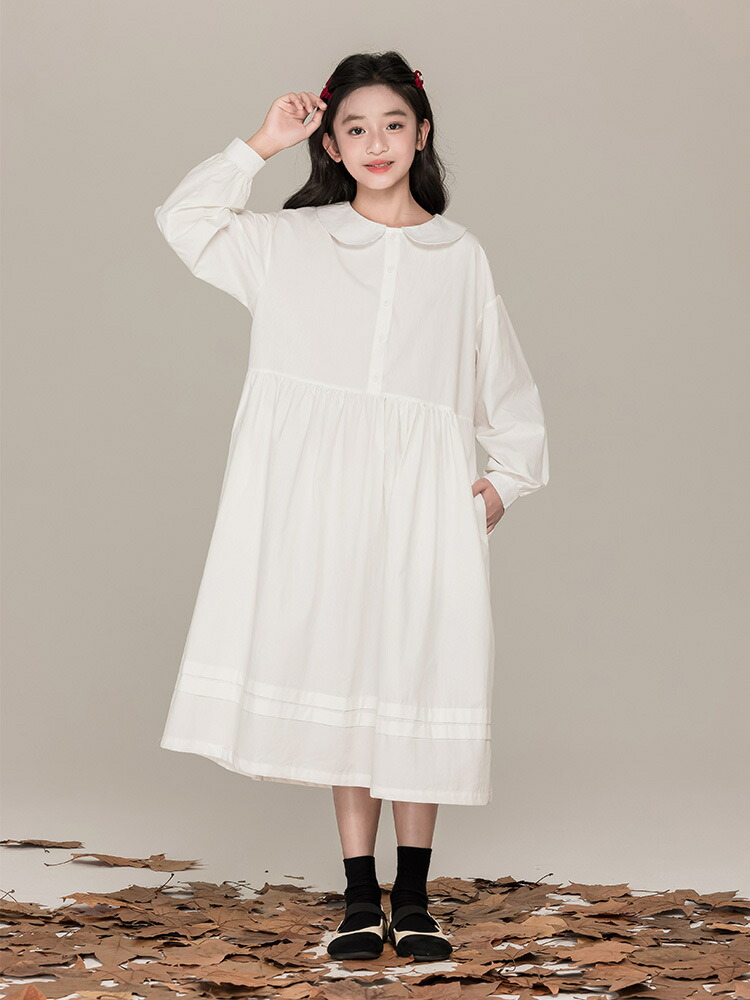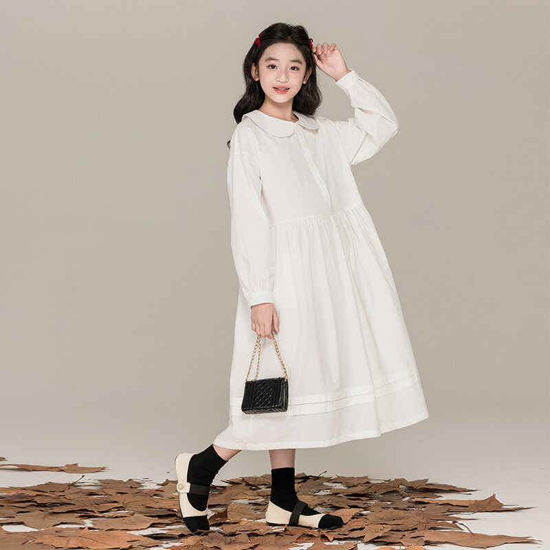 女の子 ワンピース 長袖 160 綿 ワンピース キッズ 水色 白 ワンピース 春 秋 コットン 膝下 ゆったり 親子 子供服 女の子 ワンピース 可愛い ロング丈 大きいサイズ 韓国子供服 おしゃれ 小学生 中学生 結婚式 発表会 通学 中学校 小学校 130cm 140cm 150cm 160cm 170cm