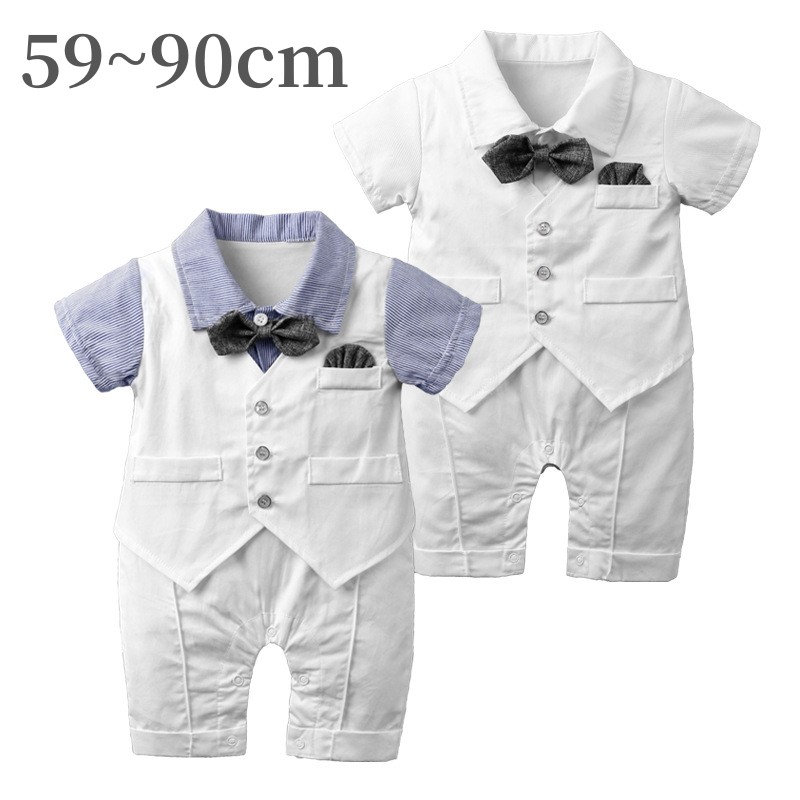 ベビー フォーマル 男の子 ロンパース ベビー ベビー服 ファッション カバーオール ロンパース 特集 ブルー ホワイト 59cm 66cm 73cm 80cm 90cm