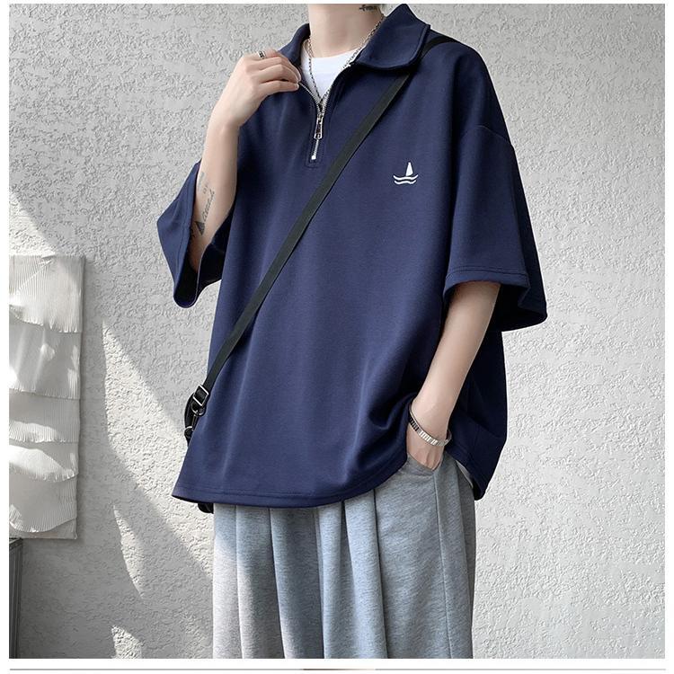 メンズ 半袖 ポロシャツ トップス ドライ オーバーサイズ カジュアル おしゃれ スポーツ 涼しい 吸汗 速乾 通気 丈夫 ウェア 刺繍ロゴ 夏 肩落ち