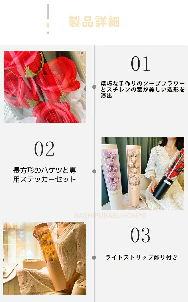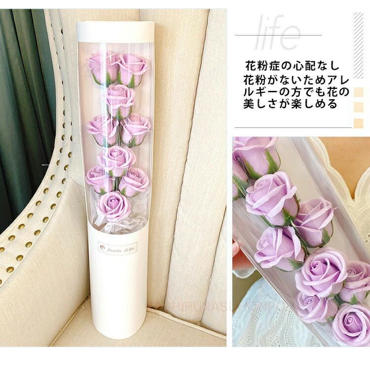 枯れない花 ソープフラワー バラの花束 レッド ピンク パープル