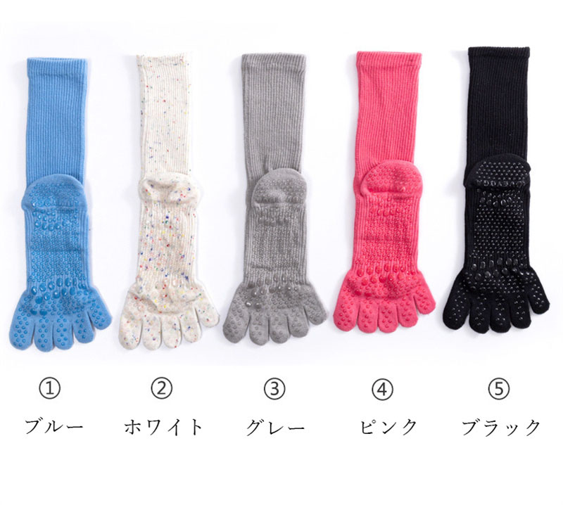 ピラティスソックス 滑り止め 5本指 ブラック ピンク グレー ブルー ホワイト ブラック ピンク グレー ブルー ホワイト