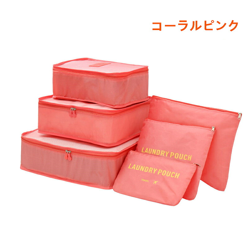 トラベルポーチ セット 6点セット 旅 バッグ 小物 ブランド雑貨 人気 コーラルピンク ピンク ブルー グレー ネイビー ワインレッド オレンジ ローズ グリーン パープル ブラック