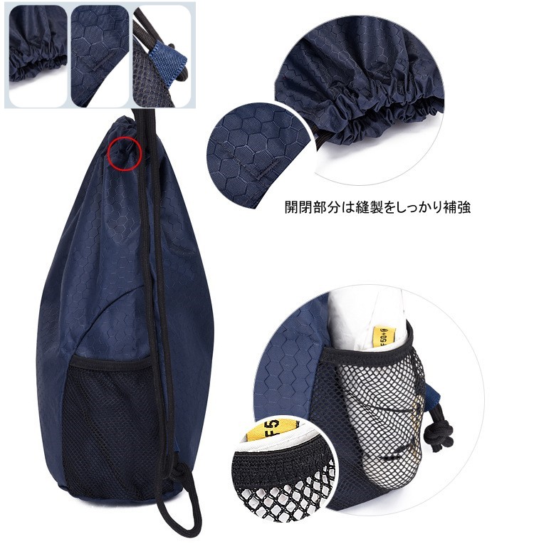・軽量・撥水性のあるナップサックで、様々なシーンで活躍!ヨガやジムなど室内スポーツ用のジムバッグや水泳、スイミング教室、ビーチ遊び、海遊び、水遊び、磯遊びグッズのお片付けプールバッグや部活動、夏休みイベント、温泉旅行、修学旅行、花見、花火大会、お祭り時の着替え衣類と浴衣収納用の巾着バッグやちょっとした買い物や防災時の非常持ち出し袋にもご使用いただけます。
