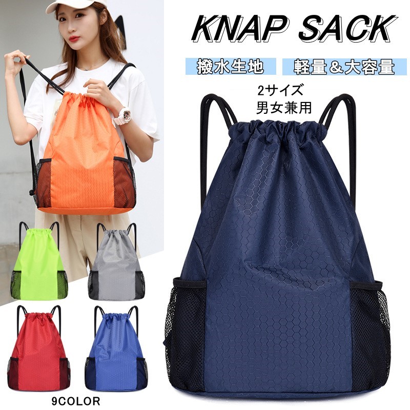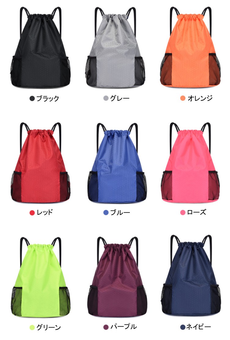 ナップサック 大人 子供 サブバッグ キッズ バッグ ランドセル ビーチバッグ プールバッグ 新作 ブラック グレー オレンジ レッド ローズ ブルー グリーン パープル ネイビー Mサイズ Lサイズ