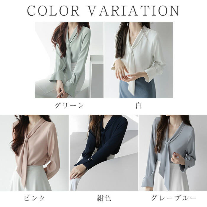 ボウタイ シャツ レディース 長袖 無 トップス シャツ ブラウス 新登場! 白 グリーン ピンク 紺色 グレーブルー S M L XL 2XL