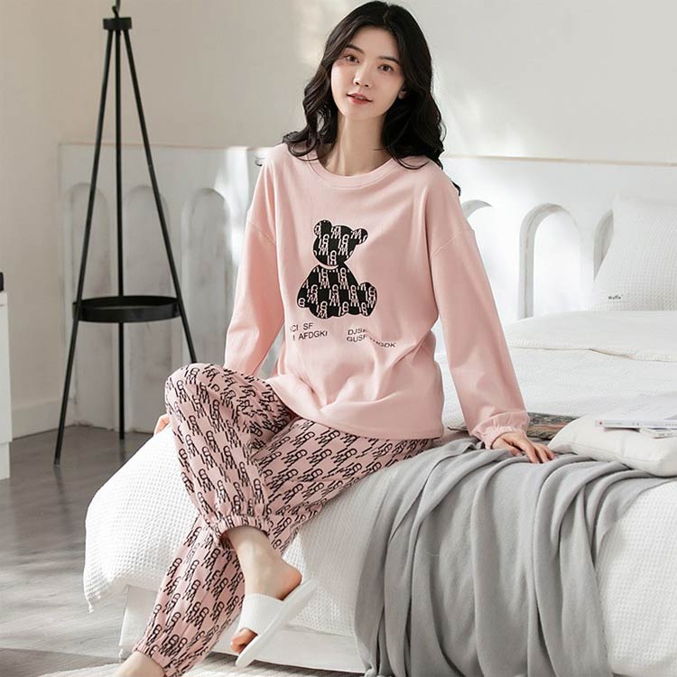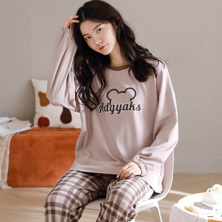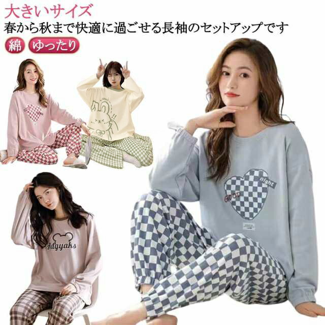パジャマ ルームウェア レディース ロングパンツ 長袖 上下セット チェック柄 熊柄 部屋着 寝間着 綿 大きいサイズ 春秋 ゆったり 女性 ナイトウエア 寝巻き トッ カジュアル