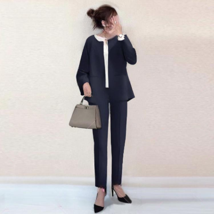 卒業式 30代 母 ノーカラー スーツ レディースファッション 特集 モカ ブラック ネイビー S M L