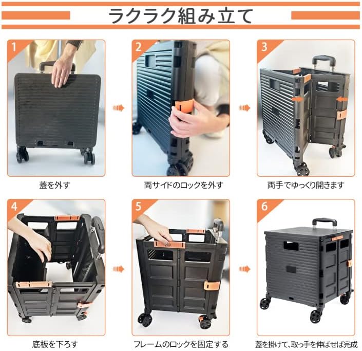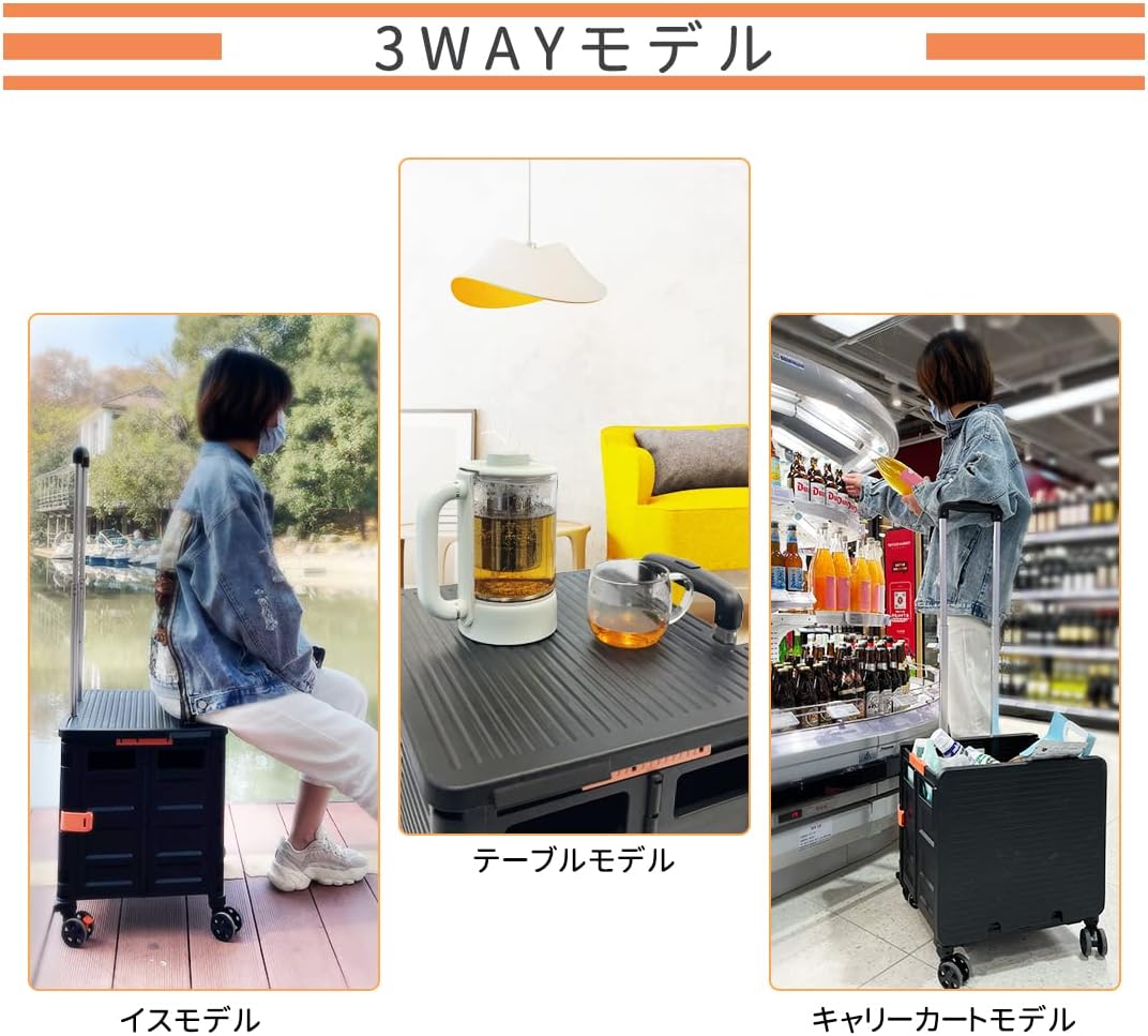 【大容量55L】 カートは箱が大容量(長さ40cm*幅35cm*高さ36cm、容量55L、2Lのペットボトル約9本;入ります。)なので、買い物、外出、保管、釣りなどいろいろな場合で利用できます。