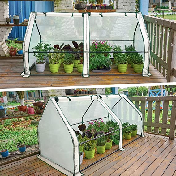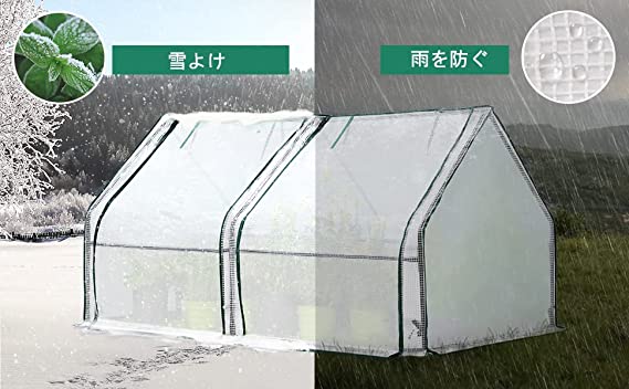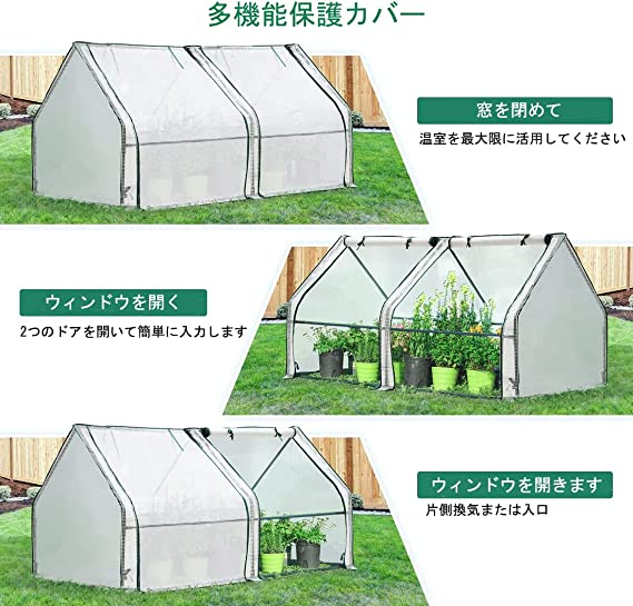 【安定性を高める】安定したプラスチック塗装スチールフレームに加えて、UV保護、防風、耐霜、防水、強化された半透明の白いPEカバーがあります。土壌の中に拡張カバーを埋めたり、石や砂袋をその上に置くと地面に立っている耐久性のある温室になります。