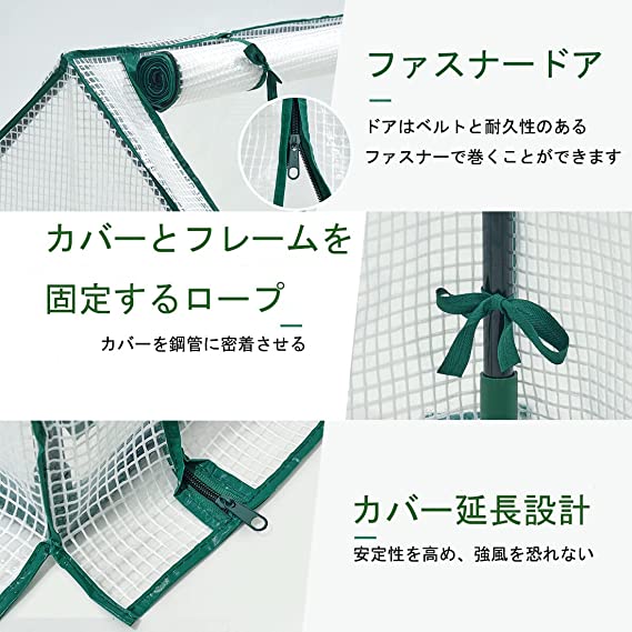 【植物の成長を促進する】暖かく冷たく保ち、冷たい風や嵐から植物を保護するために、庭の温室はあなたの植物にとってより快適な空間を提供します。換気や日光を取り入れやすいジッパー式の窓が付いているため、温室効果があり、植物の成長を促進できます。それは植物の成長をよりよく促進することができます。