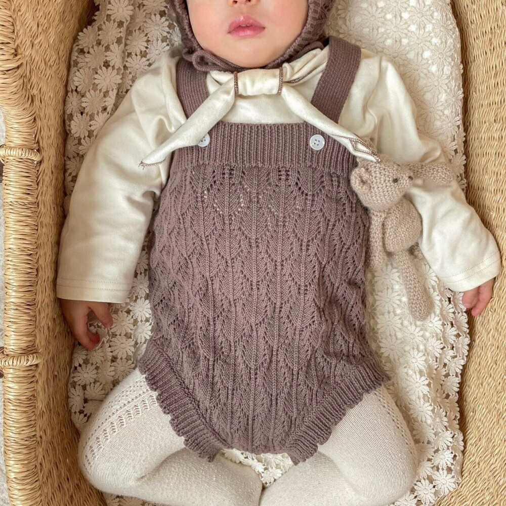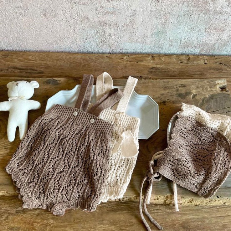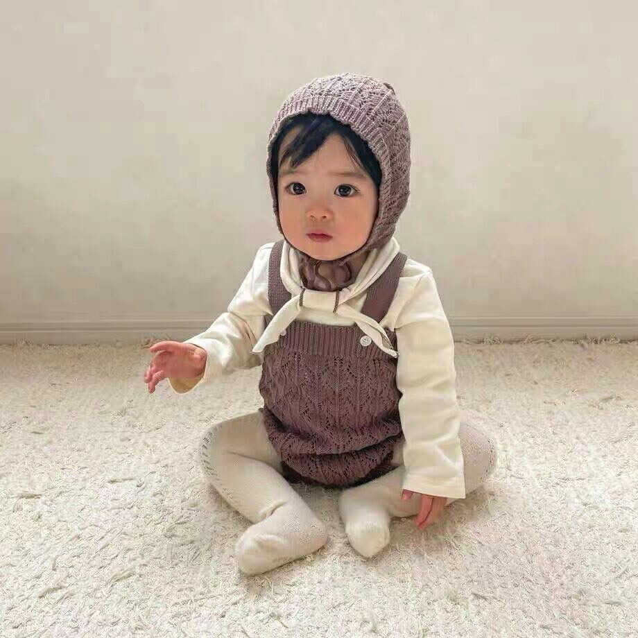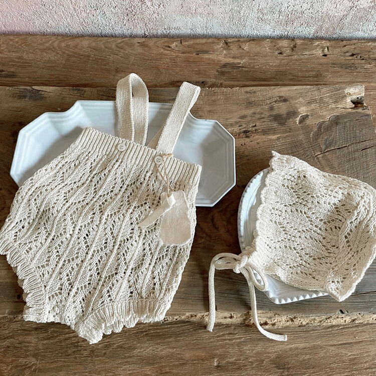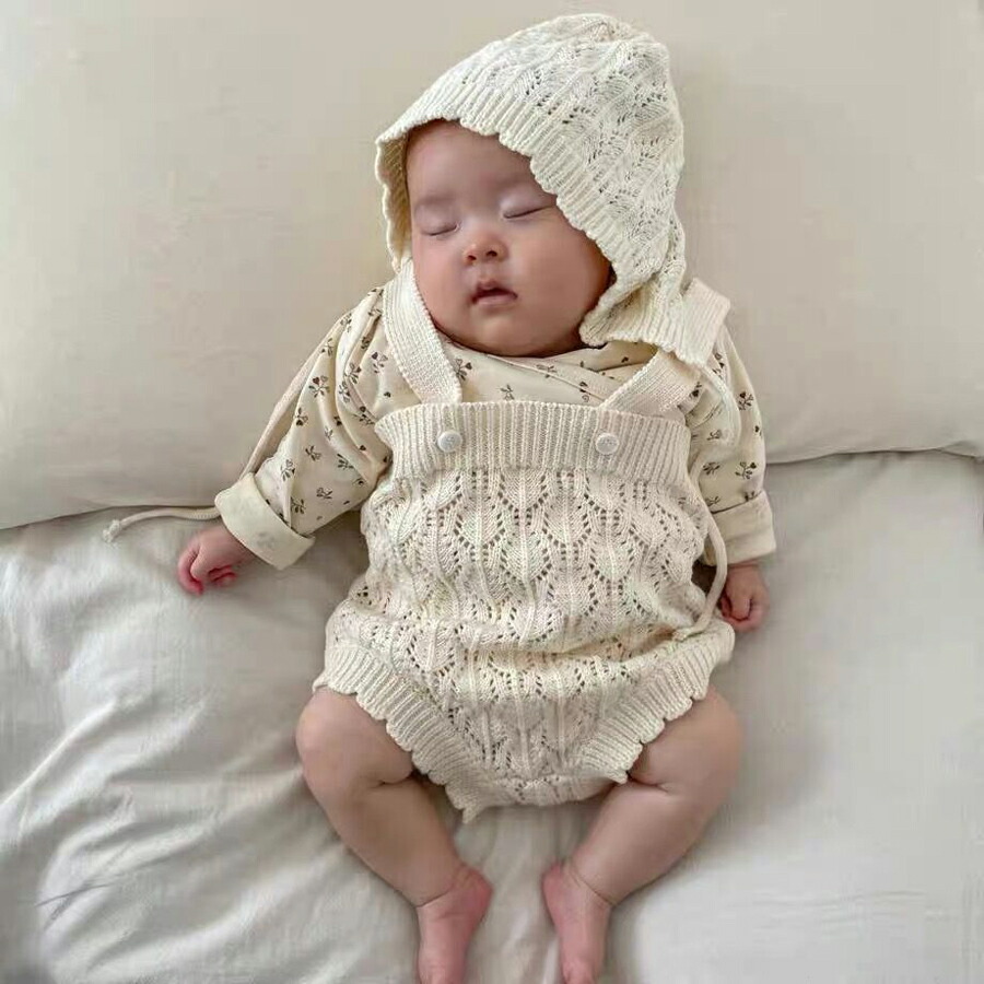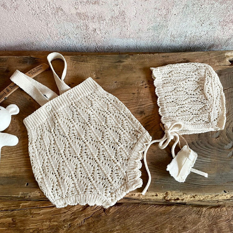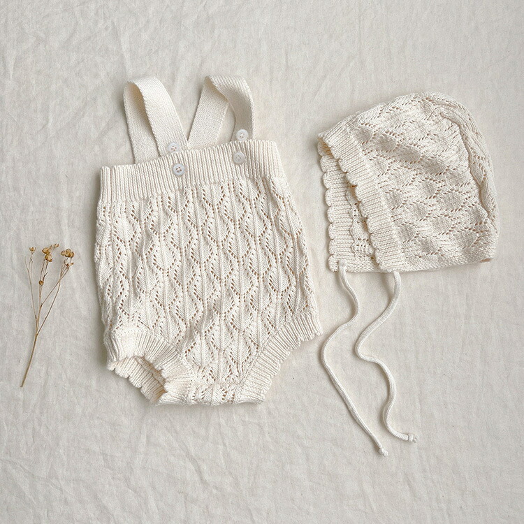 ベビー服 透かし編みニットロンパース 新生児 ロンパース ニットロンパース 韓国子供服 ベビー 赤ちゃん 服 コットン 退院着 ボンネット カバーオール サロペット 男の子 ナチュラル おしゃ 女の子
