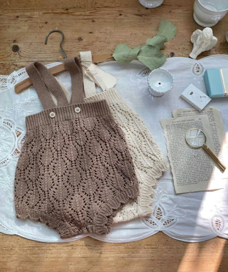 ベビー服 透かし編みニットロンパース ベビー ベビー服 ファッション オーバーオール 特集 アイボリー コーヒー 66cm 73cm 80cm 90cm