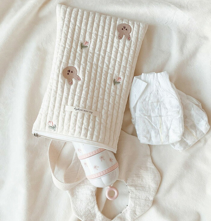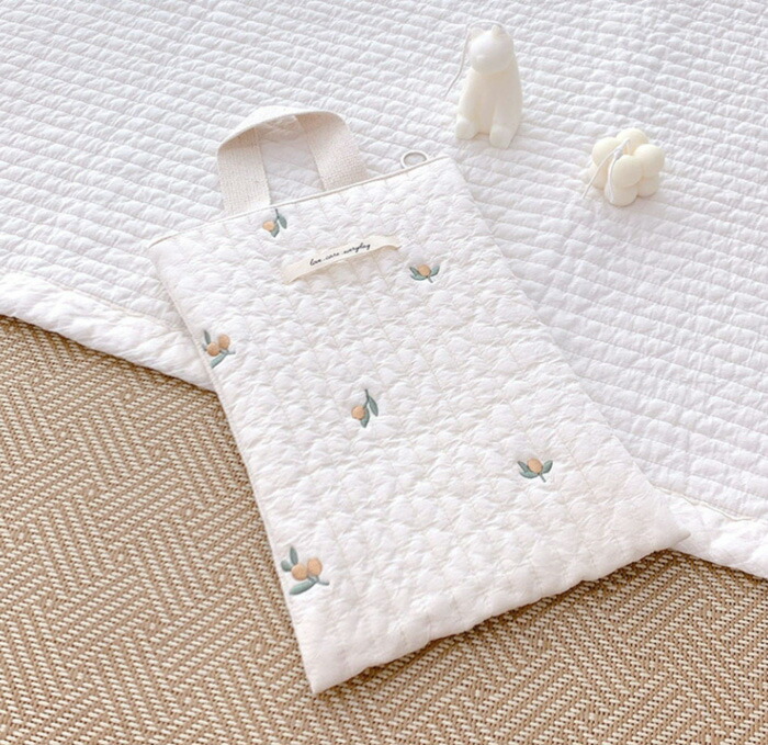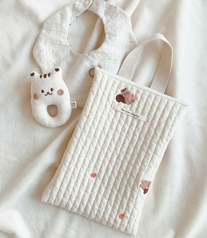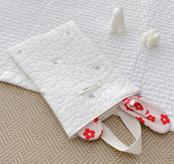やさしいイブルの風合いにかわいいポコポコキルティングのおしゃれなシューズバッグです。
