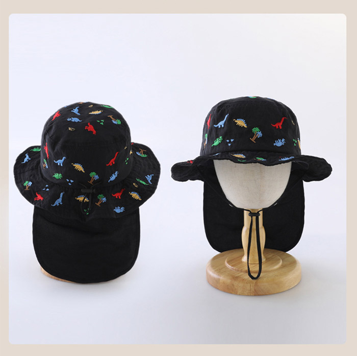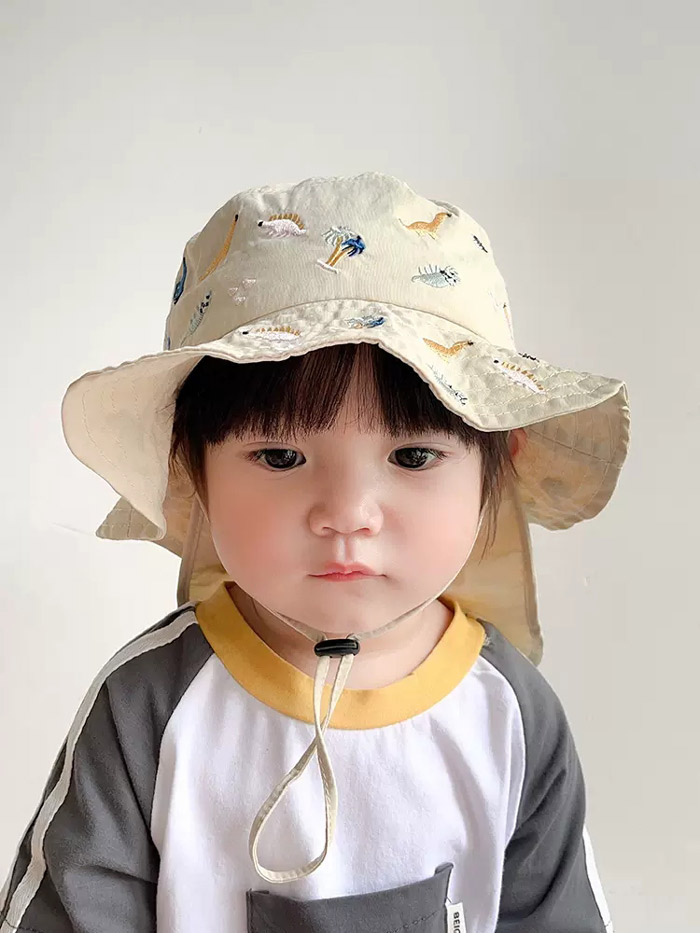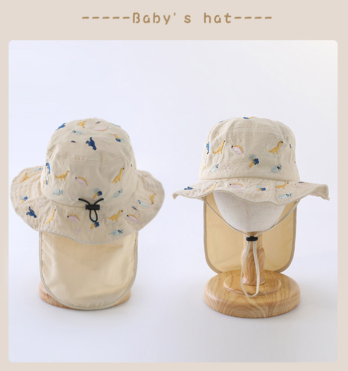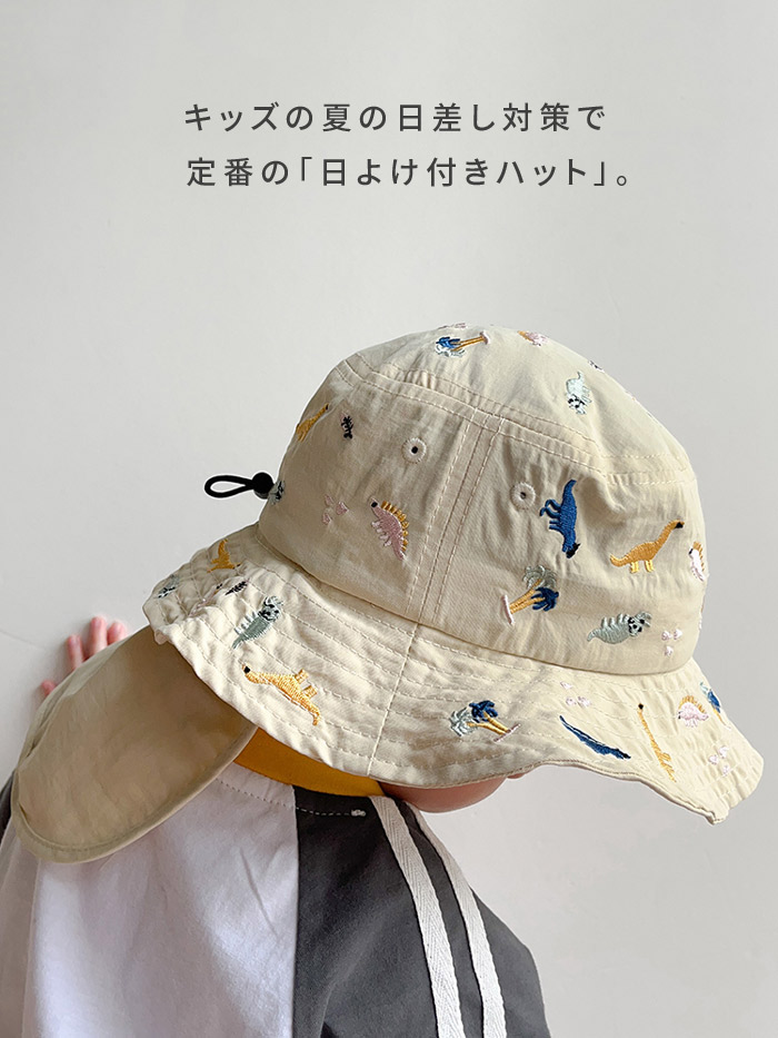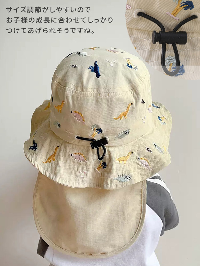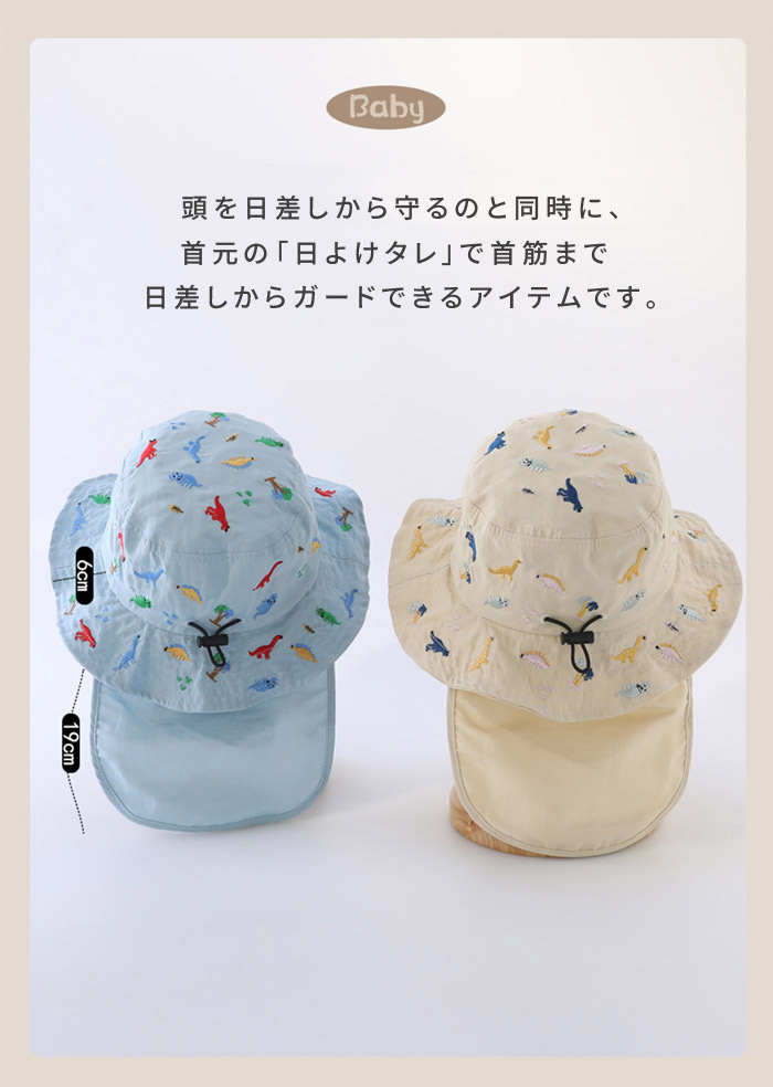キッズ ハット 帽子 男の子 女の子 恐竜 刺繍 uvカット ベビー 夏 赤ちゃん 日よけ 日除け 紫外線 対策 uv 日よけカバー たれ付き 48cm 紫外線対策 アウトドア キャ 52cm