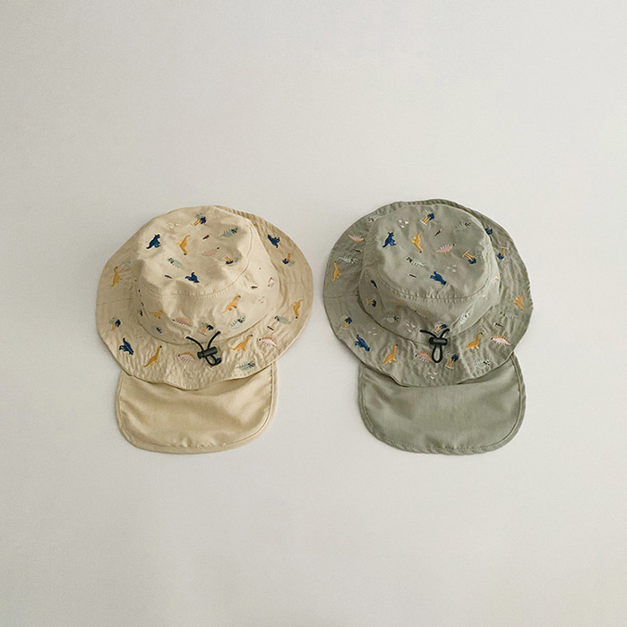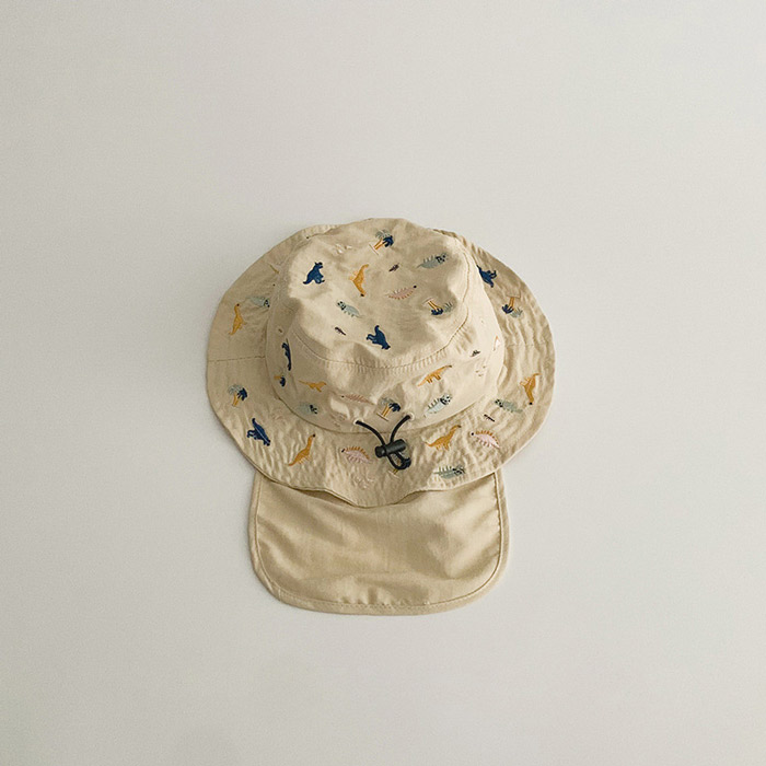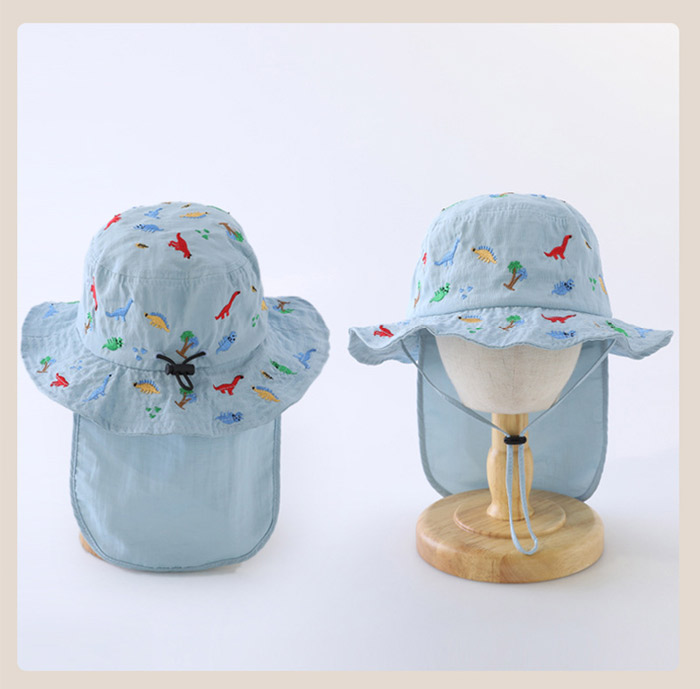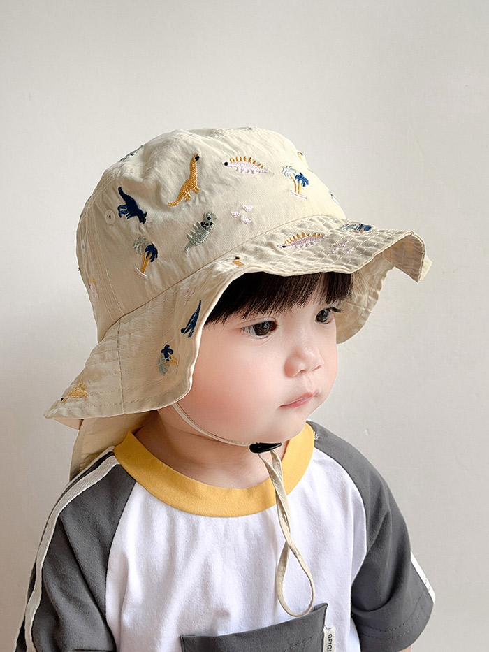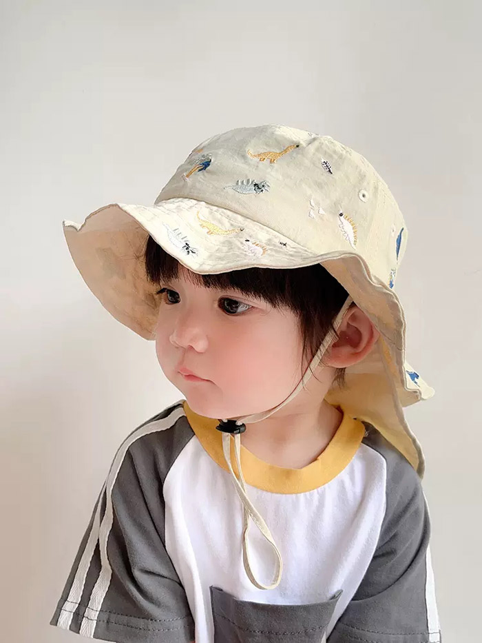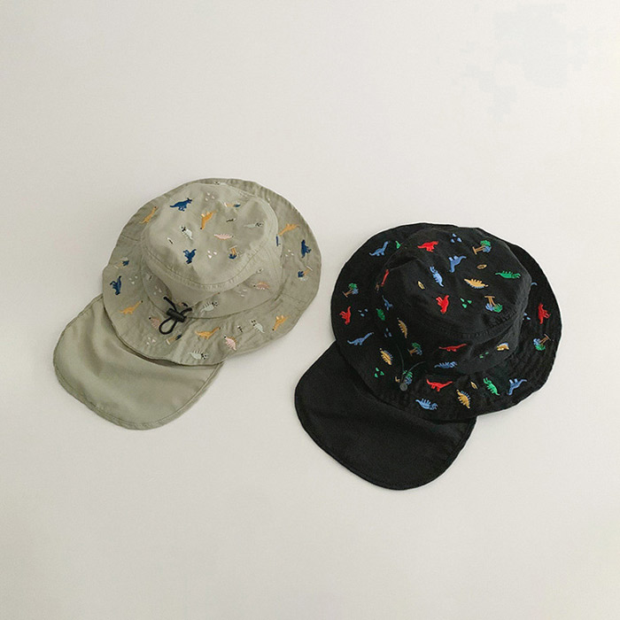 キッズ ハット 帽子 男の子 女の子 恐竜 刺繍 uvカット ベビー 夏 赤ちゃん 日よけ 日除け 紫外線 対策 uv 日よけカバー たれ付き 48cm 紫外線対策 アウトドア キャ 52cm