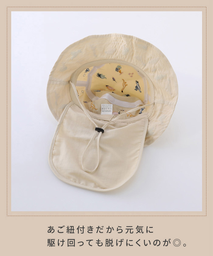 首元はたれ付きで日差しからお子様を守り、