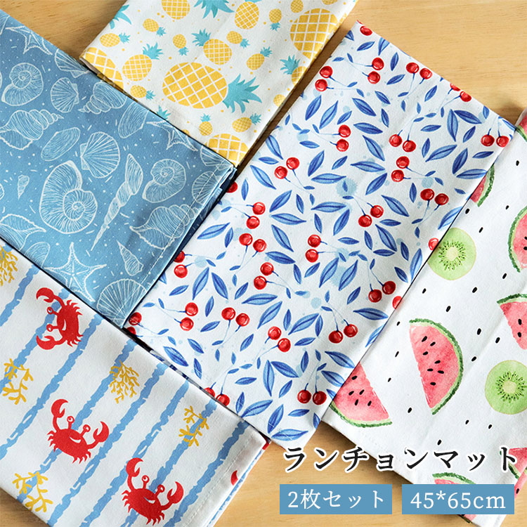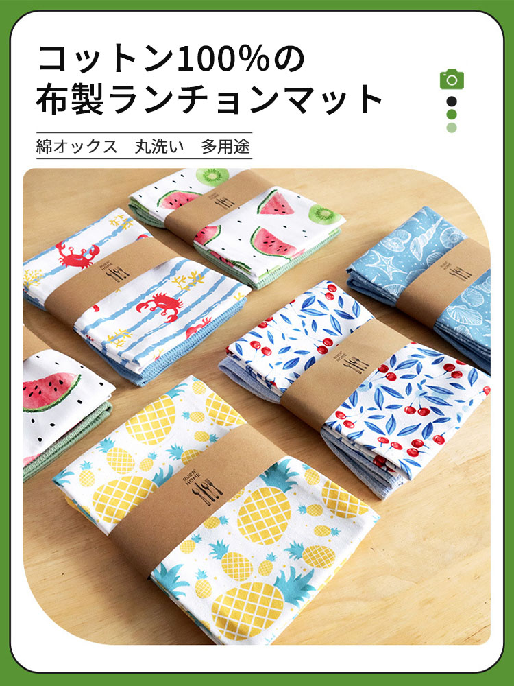 ランチョンマット 綿100% 45*6 配膳用品 キッチンファブリック ランチョンマット 新作 NO.02 スイカ+グリーン NO.03 カニ+ブルー