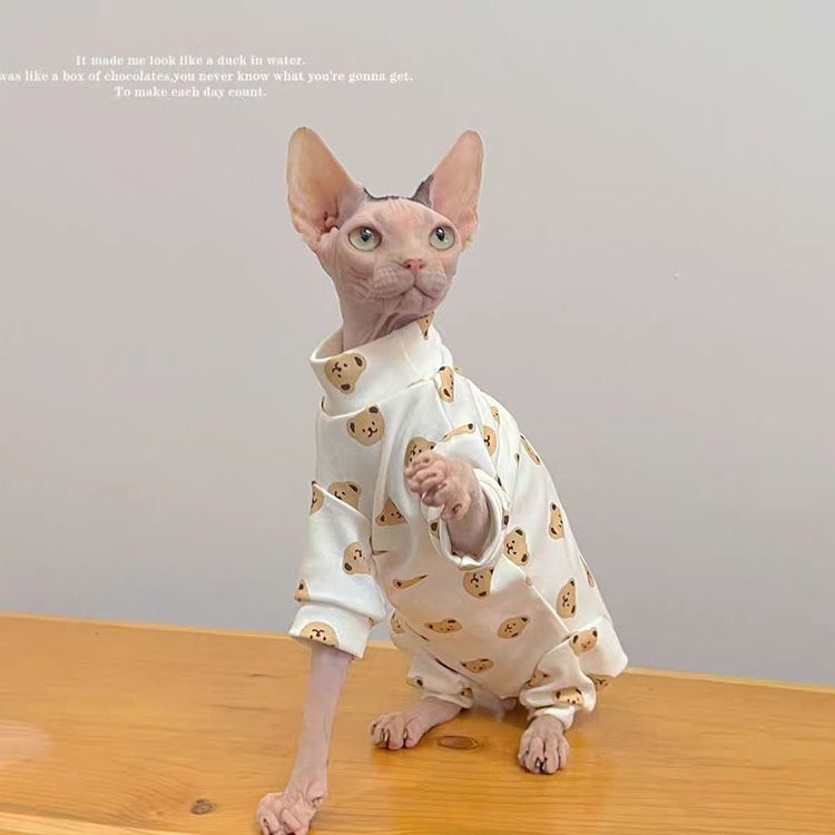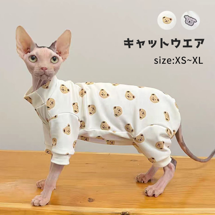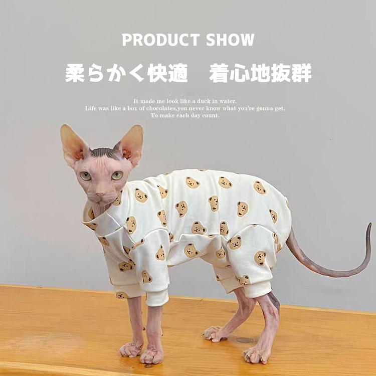 スフィンクス猫 猫服 犬服 柔らかい クマ柄 イヌ柄 F XS(1-1.5kg) S(2-3kg) M(3-4kg) L(3.5-5kg) XL(4.5-6kg)
