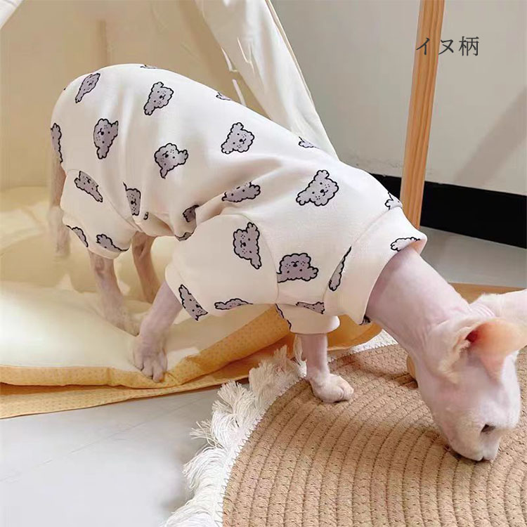 スフィンクス猫 猫服 犬服 柔らかい 肌着 ルームウェア キャットウェア 長袖 クマ柄 イヌ柄 セーター パーカー 春夏秋 コニス無毛の猫 着脱簡単 ペット おしゃれ コーニッシュレックス アウトドア