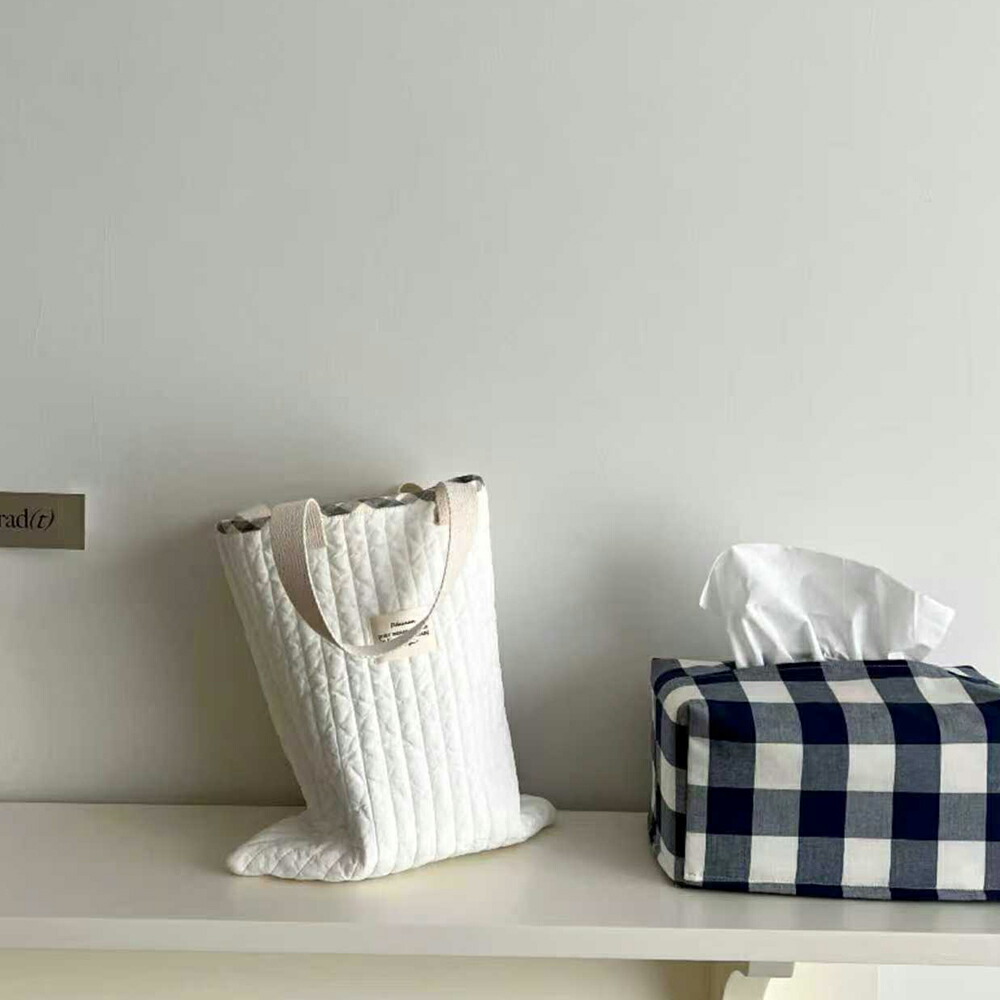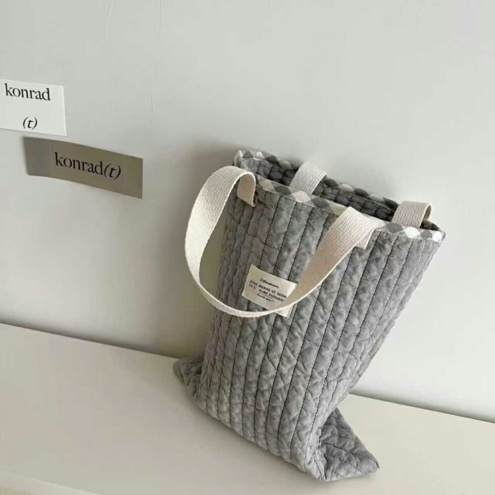 やさしいイブルの風合いにかわいいポコポコキルティングのおしゃれなシューズバッグです。