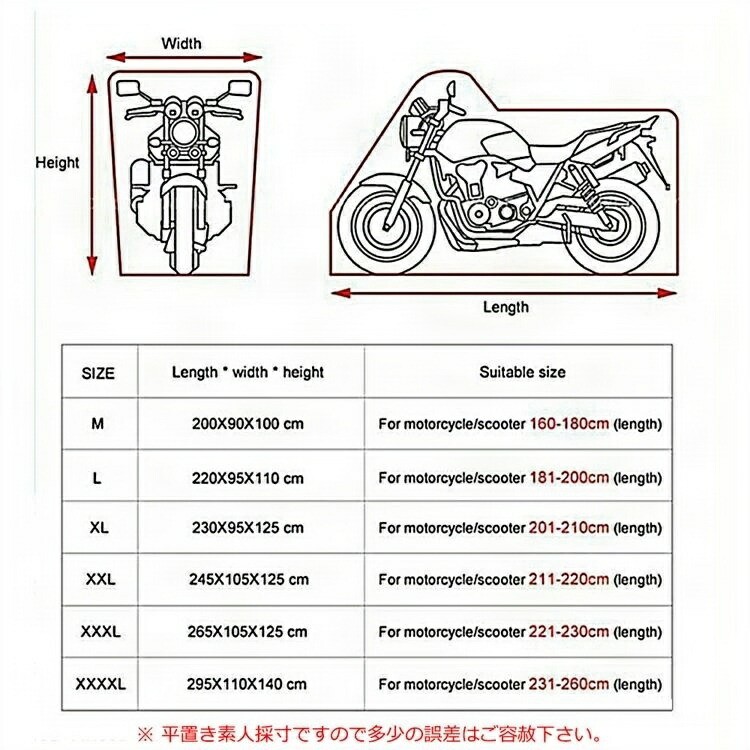 バイクカバー厚手耐熱防水6サイズ防水バ タイプ1 タイプ2 タイプ3 M L XL XXL XXXL XXXXL
