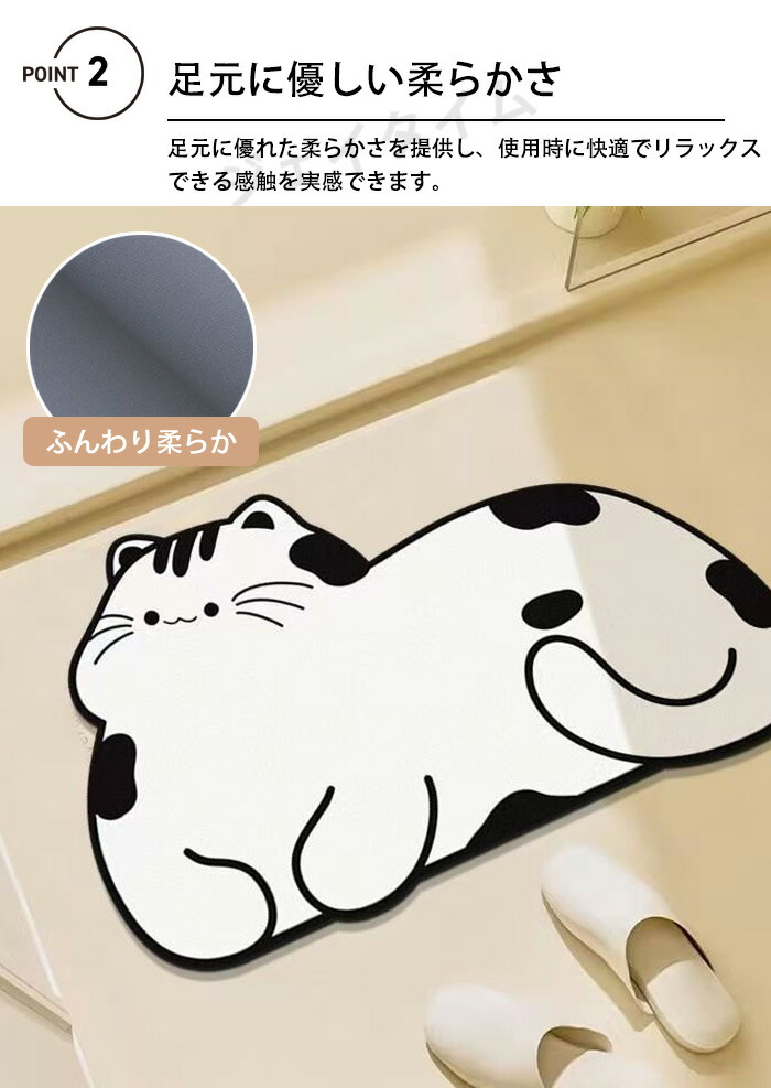 バスマット 2枚セット 色選べる 珪藻土 猫 吸水 速乾 滑り止め付き ソフト 柔らか お風呂マット 足拭きマット 足ふきマット 足拭き 抗菌 浴室 玄関 洗面所 キッチン 大判 ネコ 動物柄 お風呂