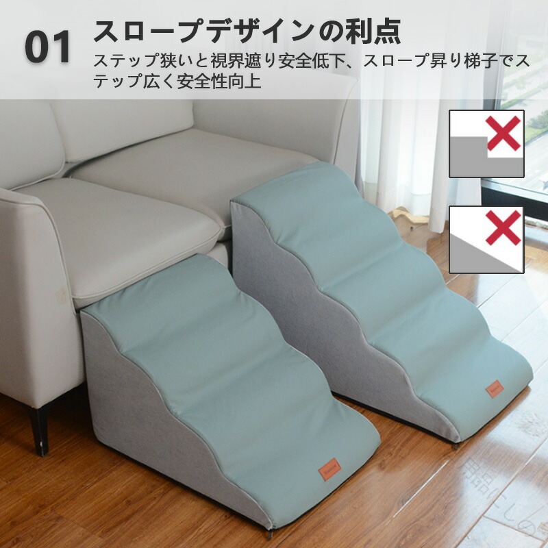 ドッグスロープ 3段~5段 スロープ ステップ 犬 ペット用 階段 ドッグステップ ペットスロープ ペットステップ クッション ウレタン 撥水 踏み台 犬用品 小型犬 短足犬 室内犬 パピー シ 老犬