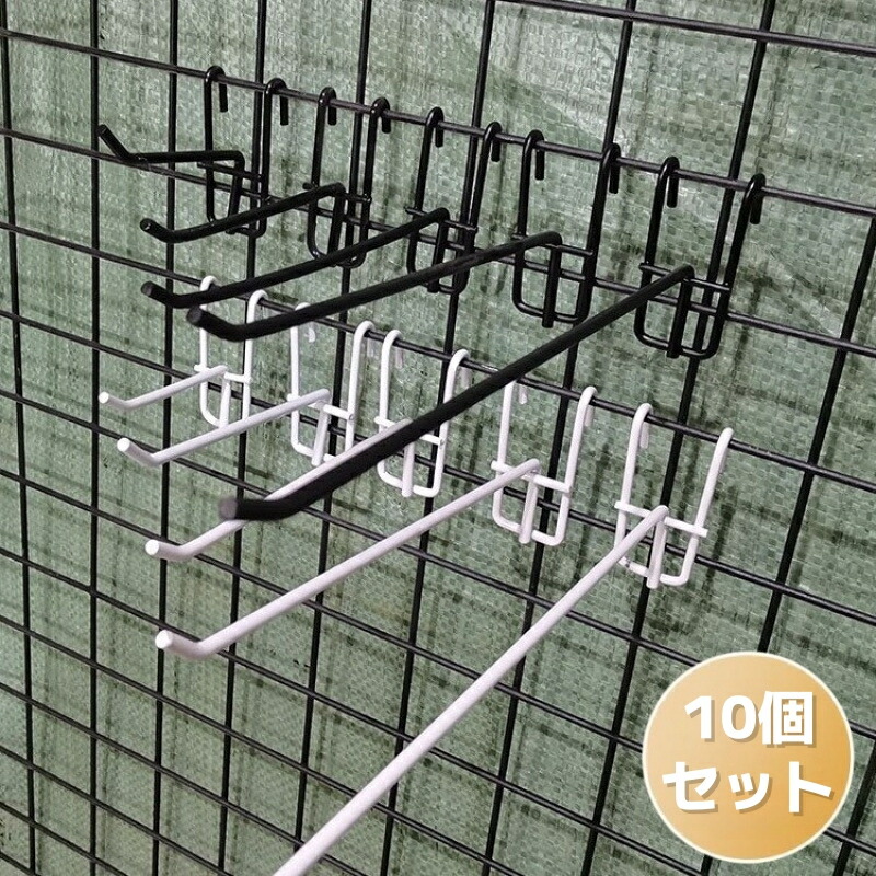 ネット用フック 10セット 陳列用 フック 吊り下げ 金具 店舗 ディスプレイ 壁掛け 黒 ブラック ホワイト 鉄 スチール 白