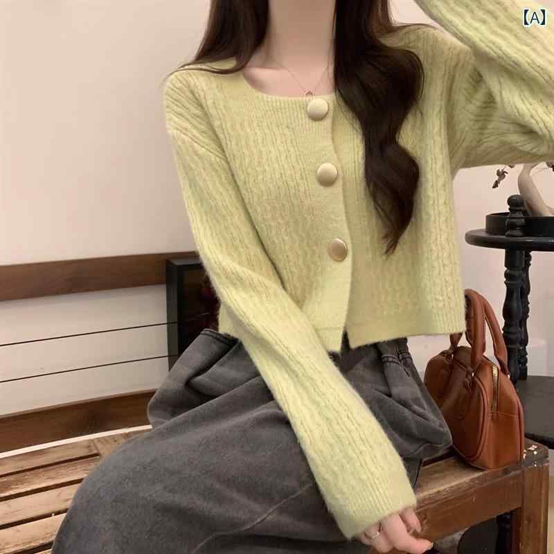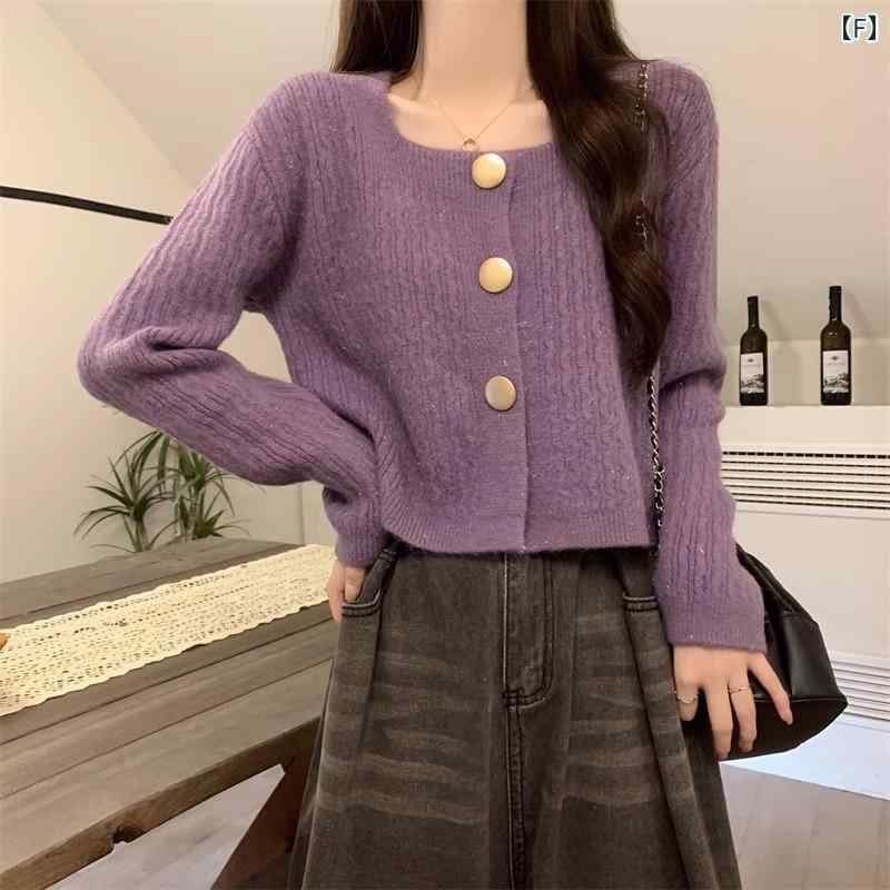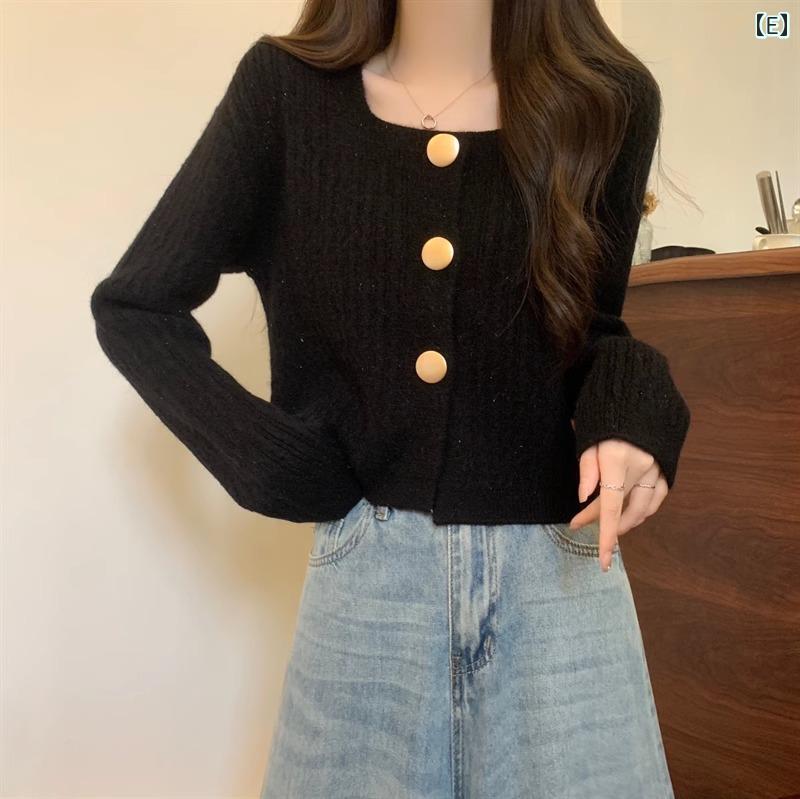 レディース トップス カジュアル おしゃれ シック ユニーク スクエアネック ショート カーディガンジャケット 春秋 ニット セーター