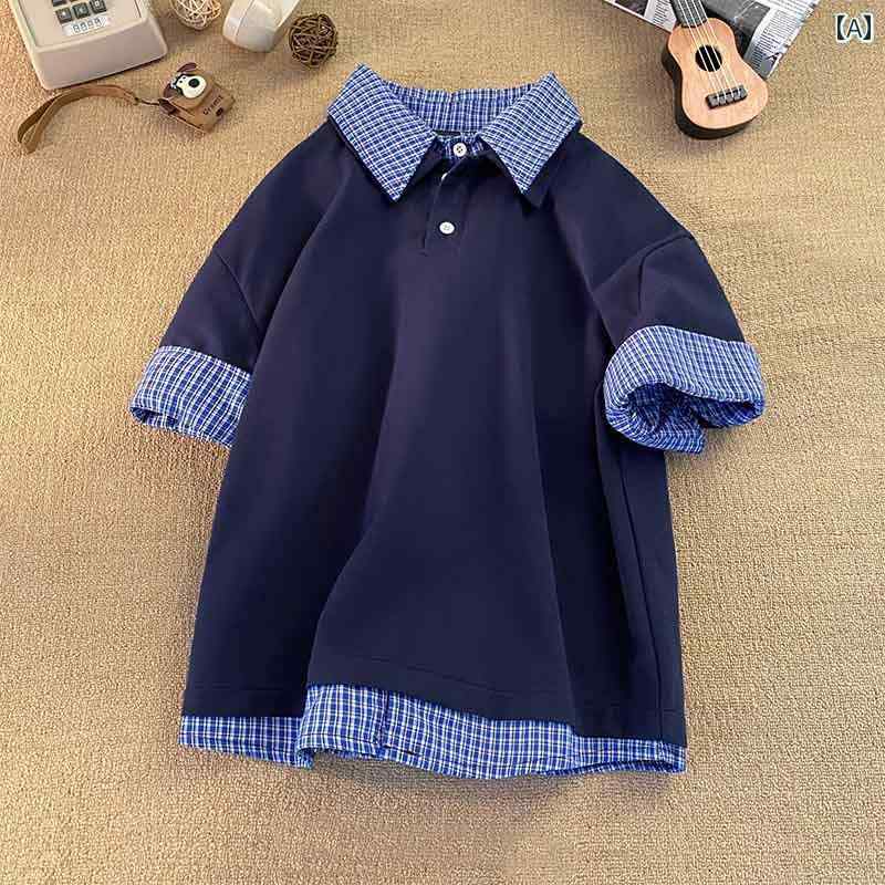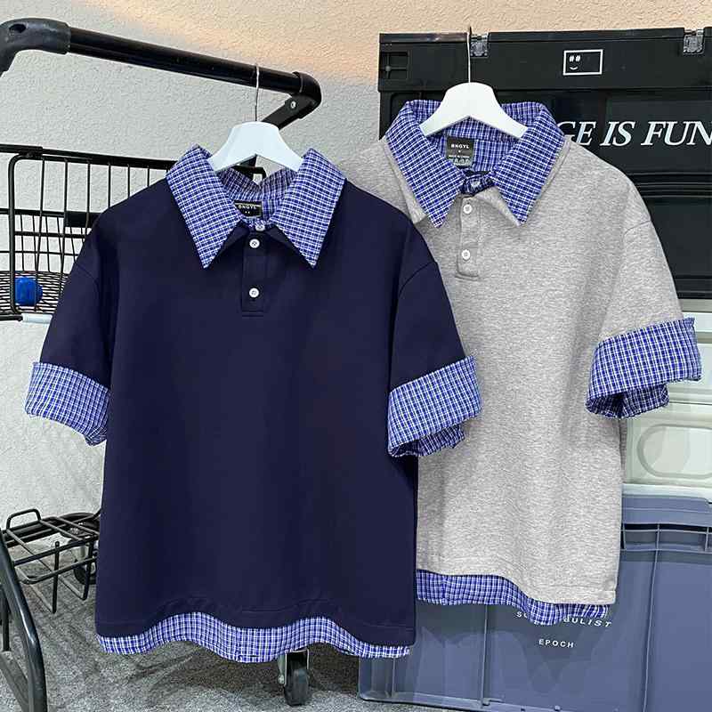 ポロシャツ メンズ 半袖 薄手 涼しい 切り替え チェック ゆったり Tシャツその他 メンズファッション カジュアル