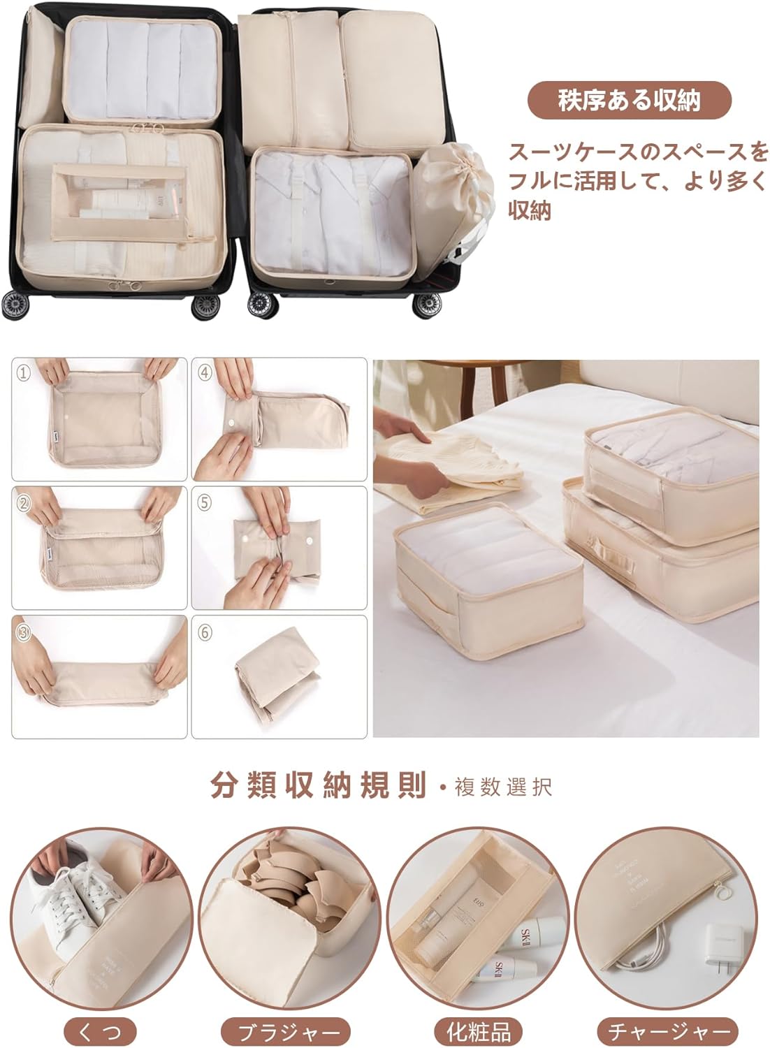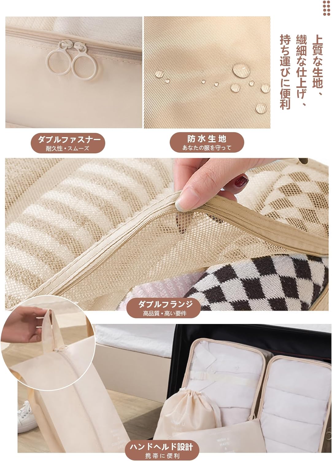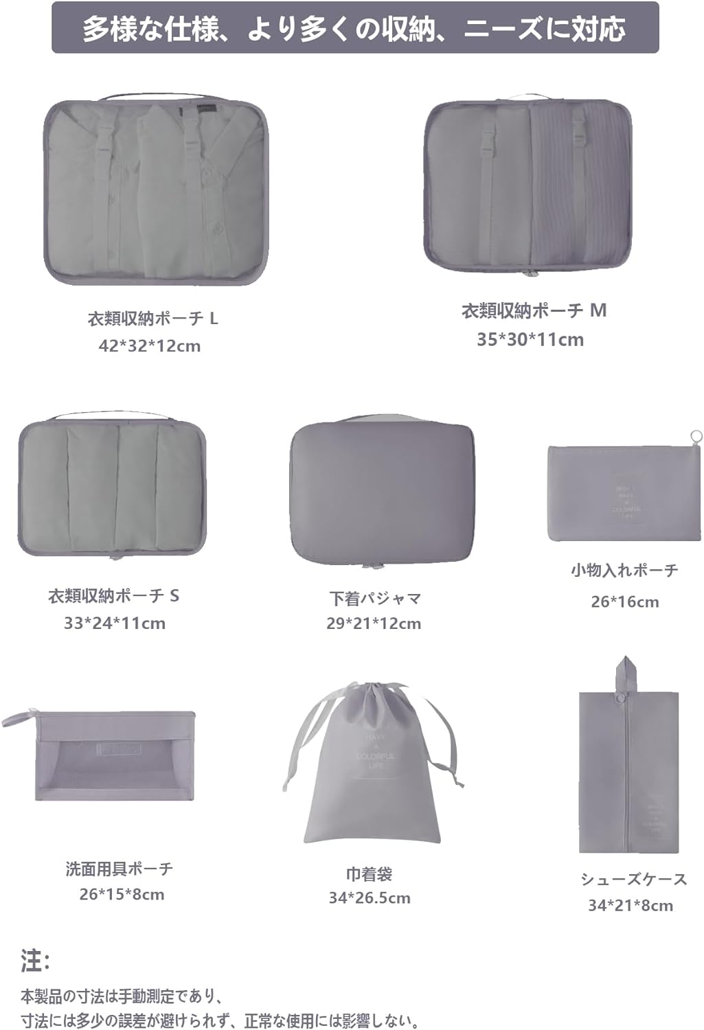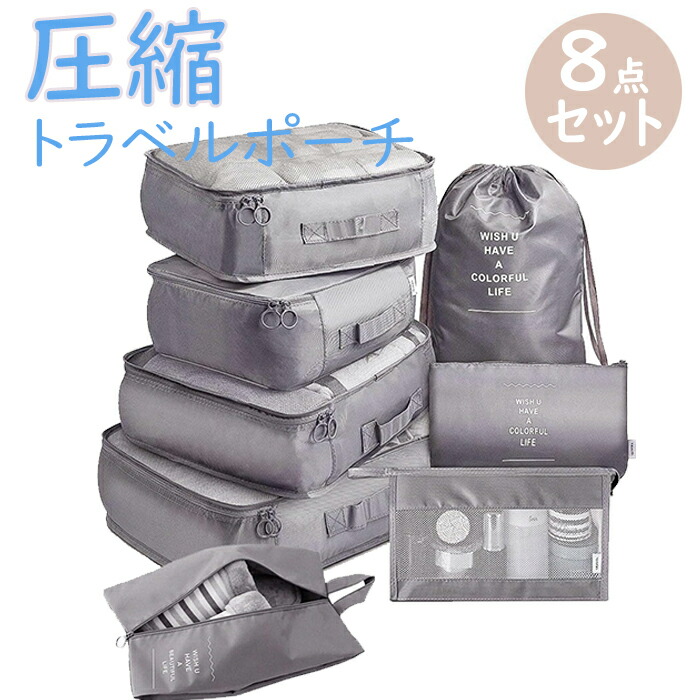 トラベルポーチ 8点セット 旅行 衣類 日用品雑貨 文房具 手芸 通販 ベージュ ピンク ブルー グレー ネイビー ブラック
