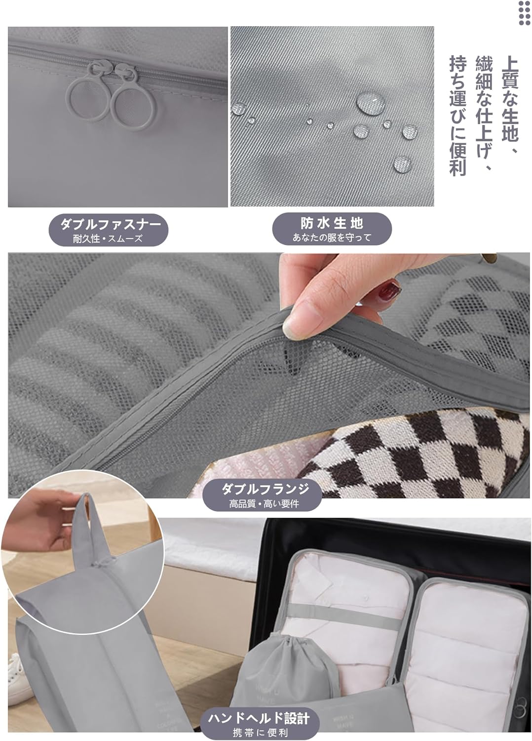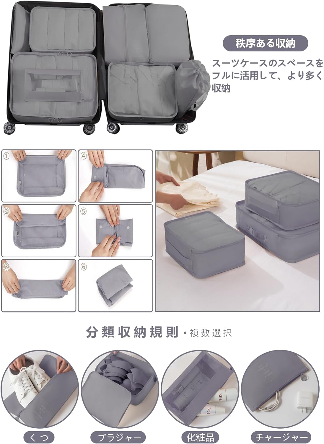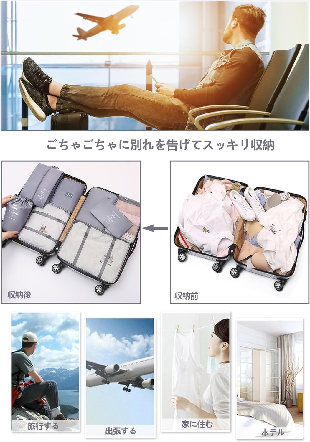 トラベルポーチ 8点セット 旅行 衣類 日用品雑貨 文房具 手芸 通販 ベージュ ピンク ブルー グレー ネイビー ブラック