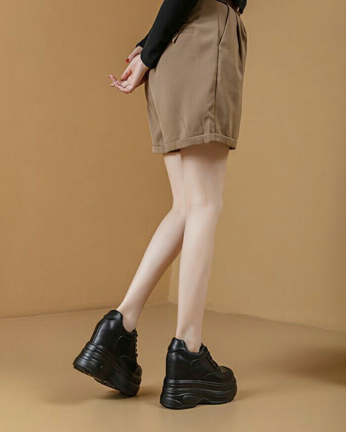 厚底スニーカー 10cm 身長アップ レディース きれいめ インヒール ウォーキングシューズ ヒールアップ 厚底靴 シークレットシューズ PUレザー カジュアル 黒 履きやすい 歩きやすい 軽量 白