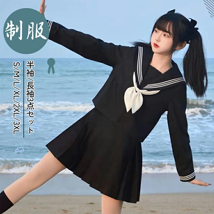 セーラー服 女子高生 制服 卒業式 入学式 3点セット 上下セット セットアップ 長袖 半袖 JK 学生服 大きいサイズ コスプレ 仮装 コスチューム スクール制服 中学生 ブラウス プリーツ 高校生