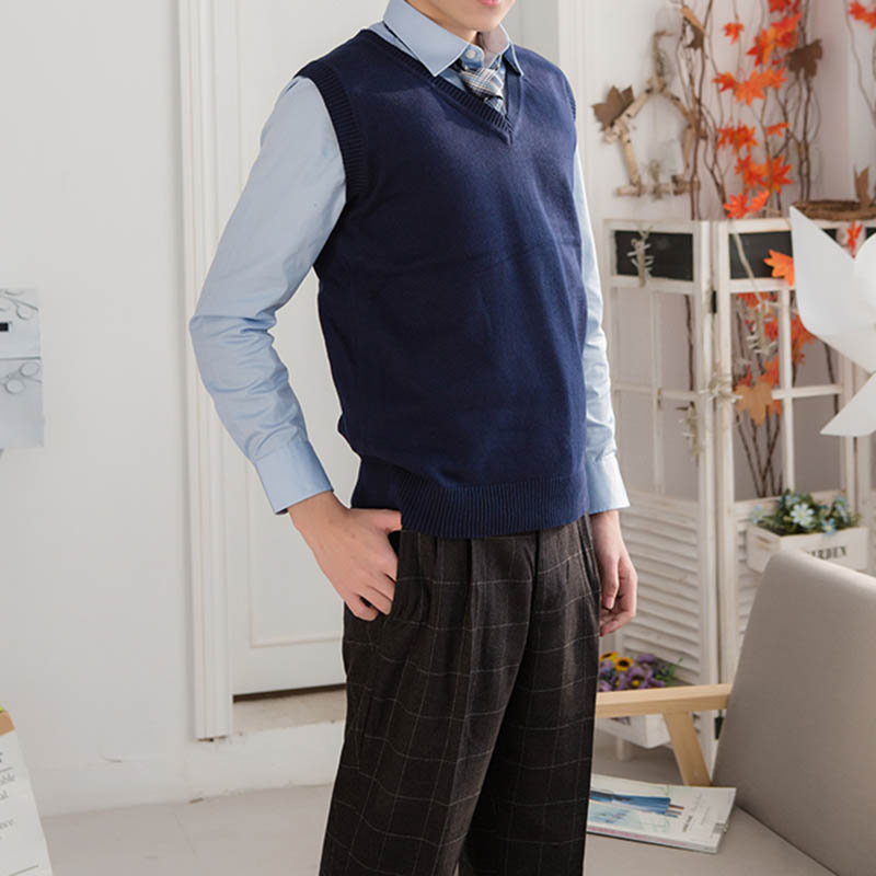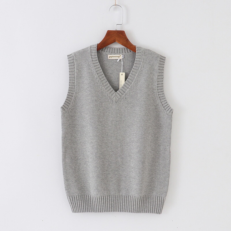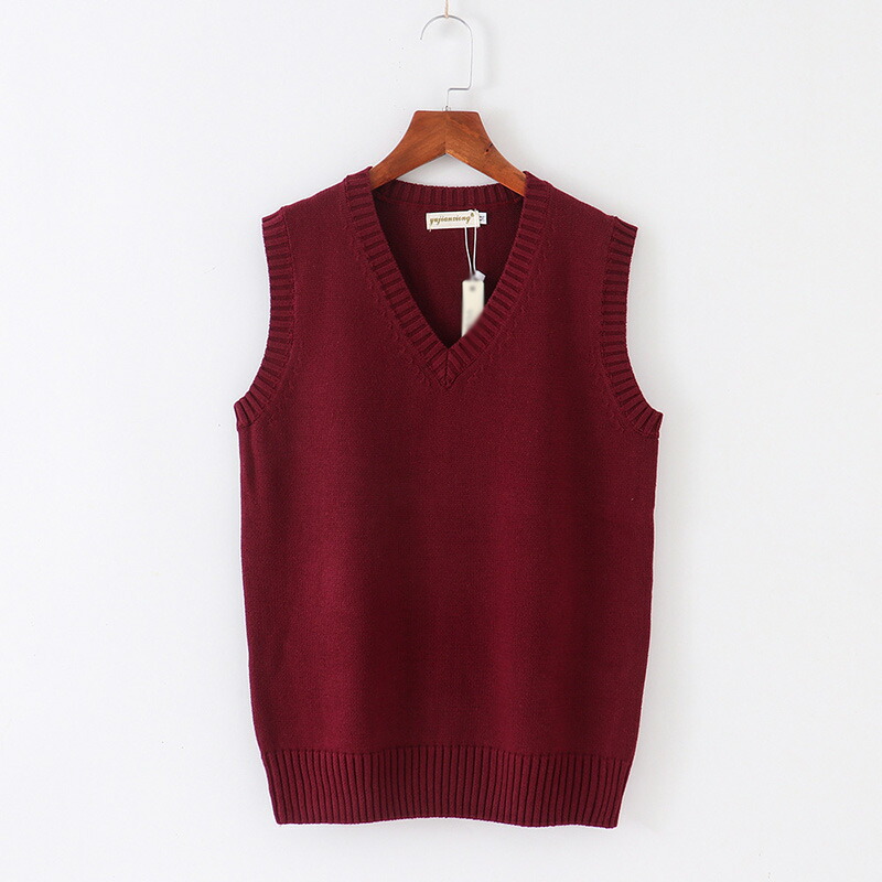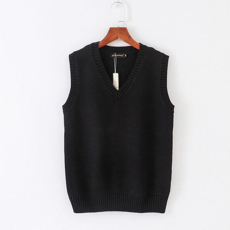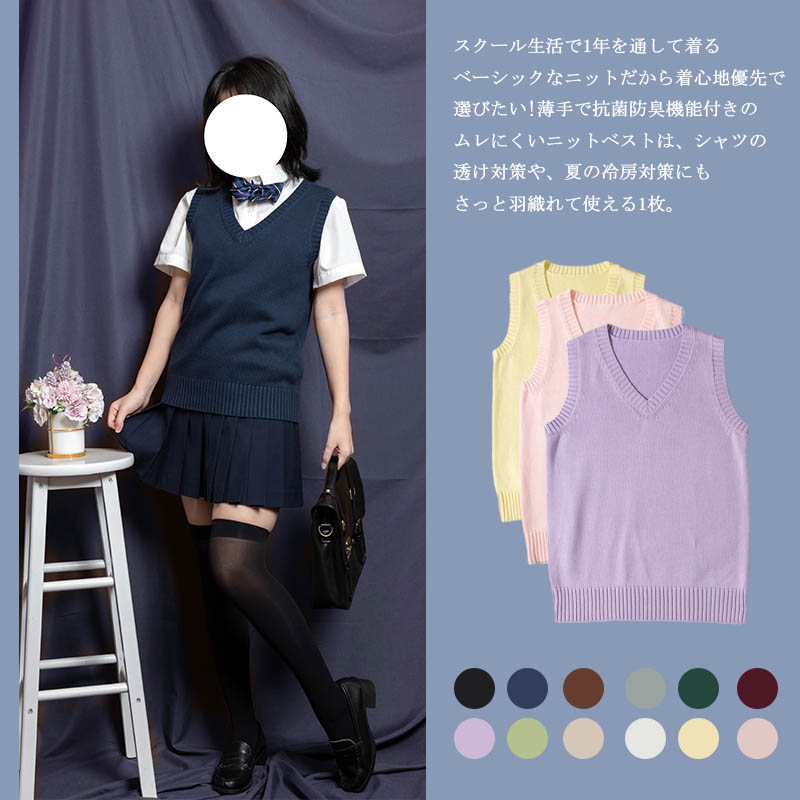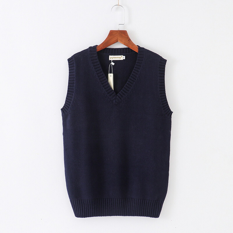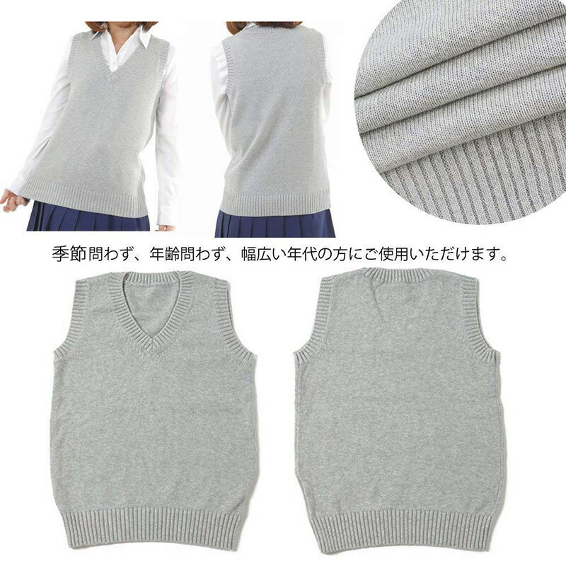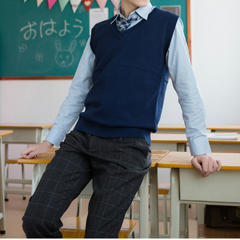 春夏薄手 Vネック ニットベスト コットン スクールベスト ノースリーブ 無地 ゆったり ニット ベスト チョッキ オールシーズン 男女兼用 スクールセーター 制服 学生服 学校 中学 通学 通 高校