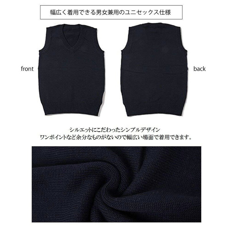 男女兼用・スクール・ビジネス着心地快適な、着回せる綿ニートベスト。