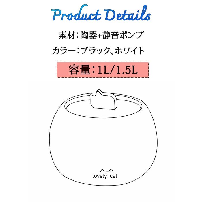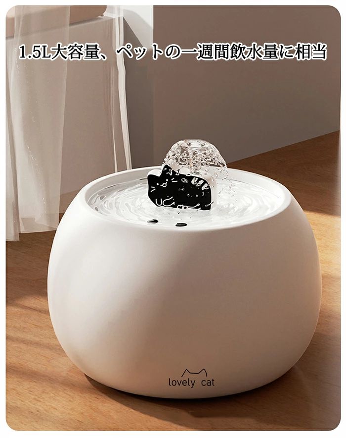 ペット 自動給水器 猫 水飲み器 水飲 ホワイト ブラック 1L 1.5L