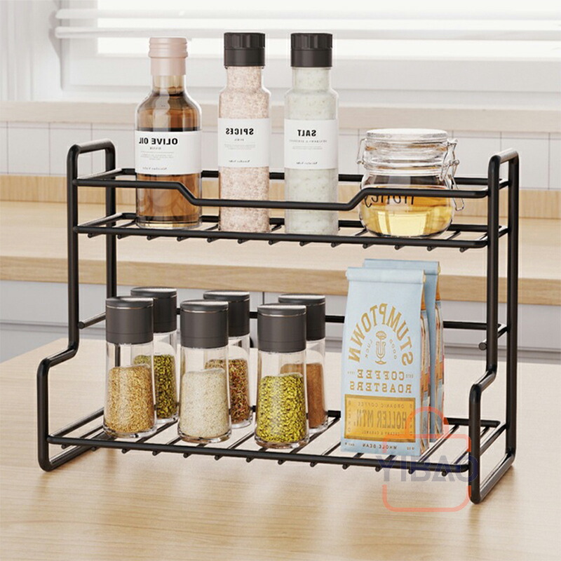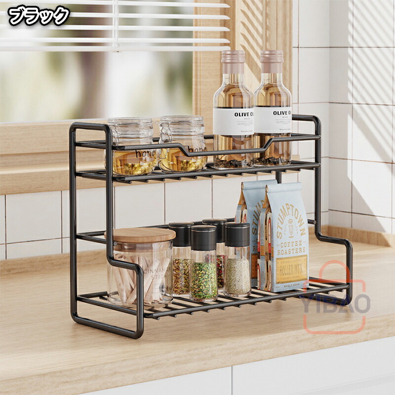 キッチン収納 ラック 棚 ボトルラック 調味料 スパイス スパイスボトル キャニスター レンジフード下 キッチン シンプル ブラック 調味料棚 台所収納ラック卓上ラック ボトルラックスパイ モノトーン