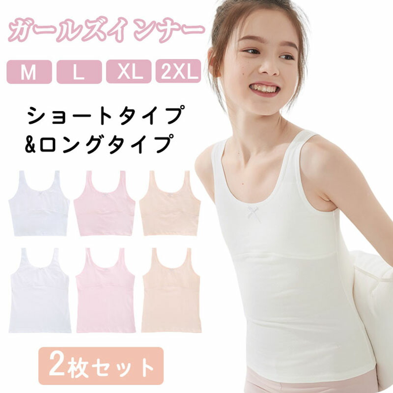 2枚セット ジュニア ファーストブラ キッズ ベビー マタニティ 通販 ホワイト/ショート ピンク/ショート 肌色/ショート ホワイト/ロング ピンク/ロング 肌色/ロング M L XL 2XL