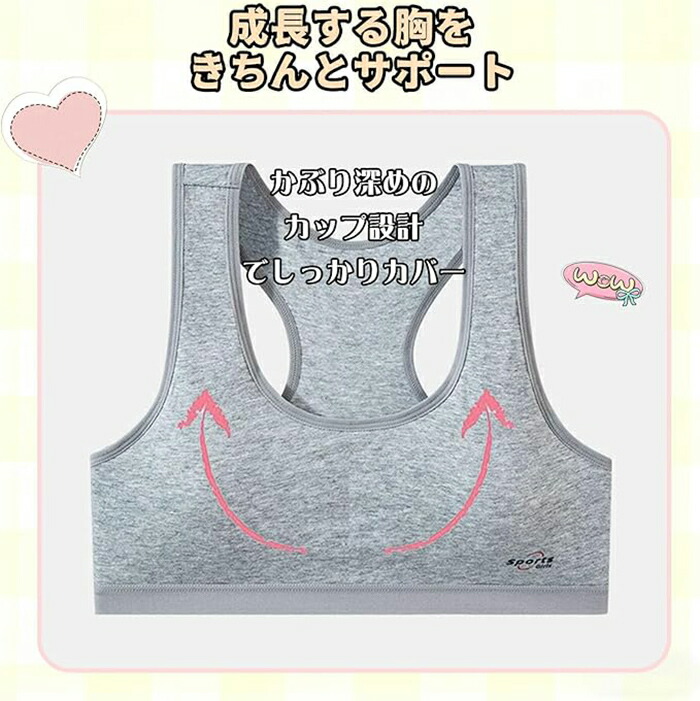 スポーツブラ ジュニア ブラ 綿素材 キッズ 下着 パジャマ ブラジャー 通販 ホワイト(1枚) グレー(1枚) ブラック(1枚) ピンク(1枚) 肌色(1枚) ブルー(1枚) ホワイト+グレー(2枚) ホワイト+ブラック(2枚) ホワイト+ピンク(2枚) ホワイト+肌色(2枚) ホワイト+ブルー(2枚) グレー+ブラック(2枚) グレー+ピンク(2枚) グレー+肌色(2枚) グレー+ブルー(2枚) ブラック+ピンク(2枚) ブラック+肌色(2枚) ブラック+ブルー(2枚) ピンク+肌色(2枚) ピンク+ブルー(2枚) 肌色+ブルー(2枚)