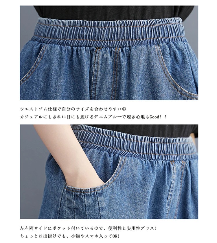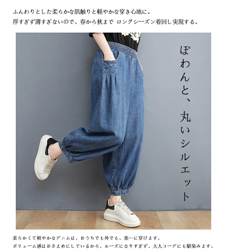 バルーンパンツ レディース デニム ロングパンツ 大きいサイズ デニムパンツ ワイド ウェストゴム パンツ ゆったり 体型カバー オシャレ ボトムス バルーン サルエルパンツ 春 夏 ポケット