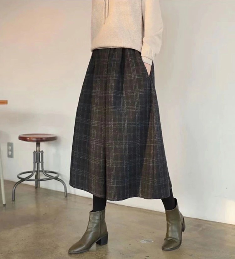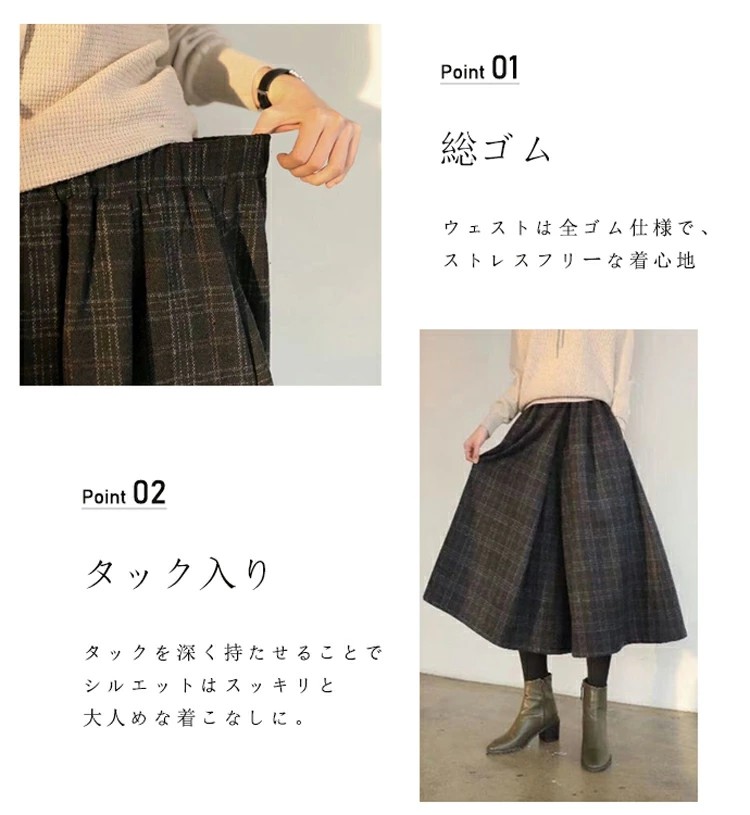 キーワード:ガウチョパンツ ワイドパンツ 秋冬 チェック パンツ レディース きれいめ ボトムス スカーチョ 冬 防寒 保温 ロングパンツ ワイド ふんわり ボリューム キュロットパンツ 九分丈 ウェストゴム フレアパンツ 暖かい ハイウェスト お洒落 体型カバー チェック柄パンツ Aライン 着痩せ 美脚