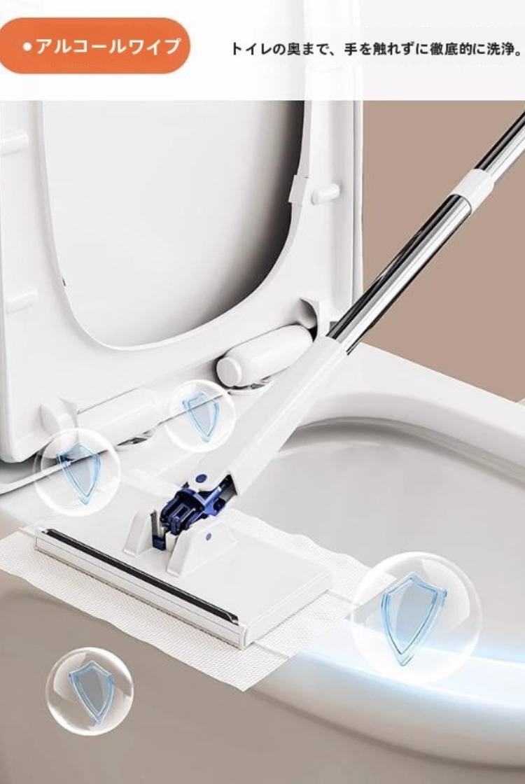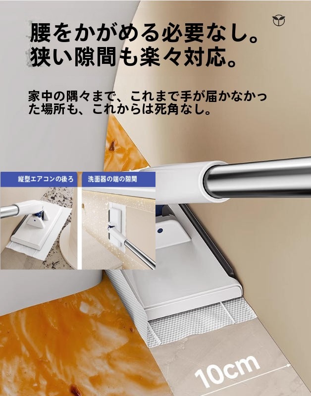 フロアワイパー フロアモップ ワンタッチ 掃除範囲 16cm 10cm 手が汚れない フローリングワイパー ミニモップ トイレワイパー 長さ調整 自立式 掃除用具 トイレ掃除 床掃除 窓 壁 鏡 天井