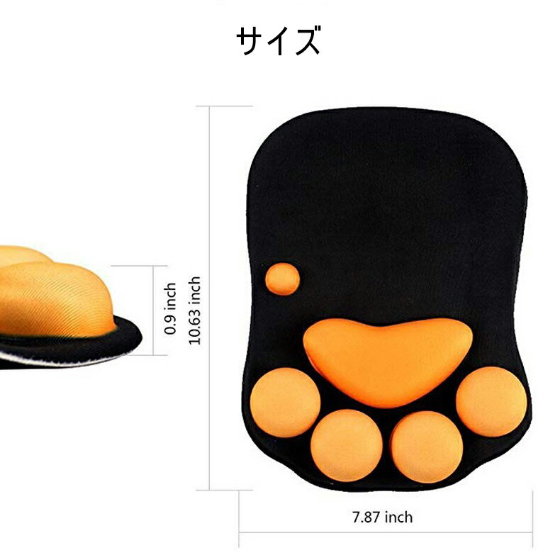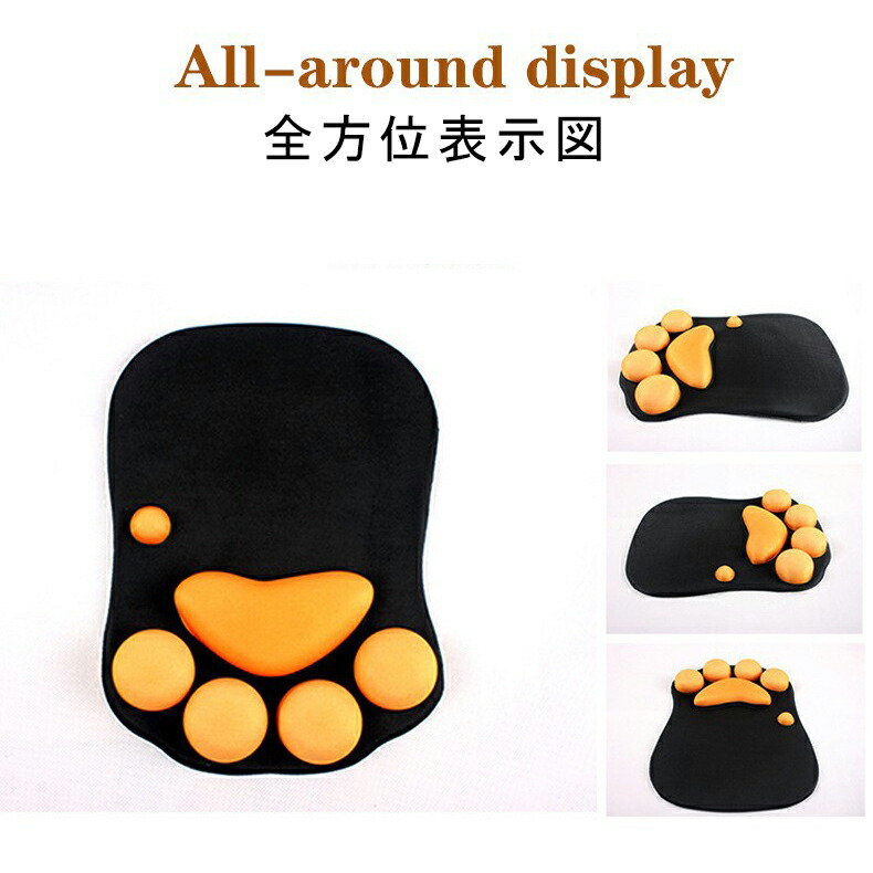 【ネコの肉球】ぷにぷに肉球が付き、かわいいだけではなく、ほどよい弾力で手首の疲労を軽減します。自宅のパソコンで使うのも良いですし、オフィスで使えばデスクが華やかになること間違いなしです。