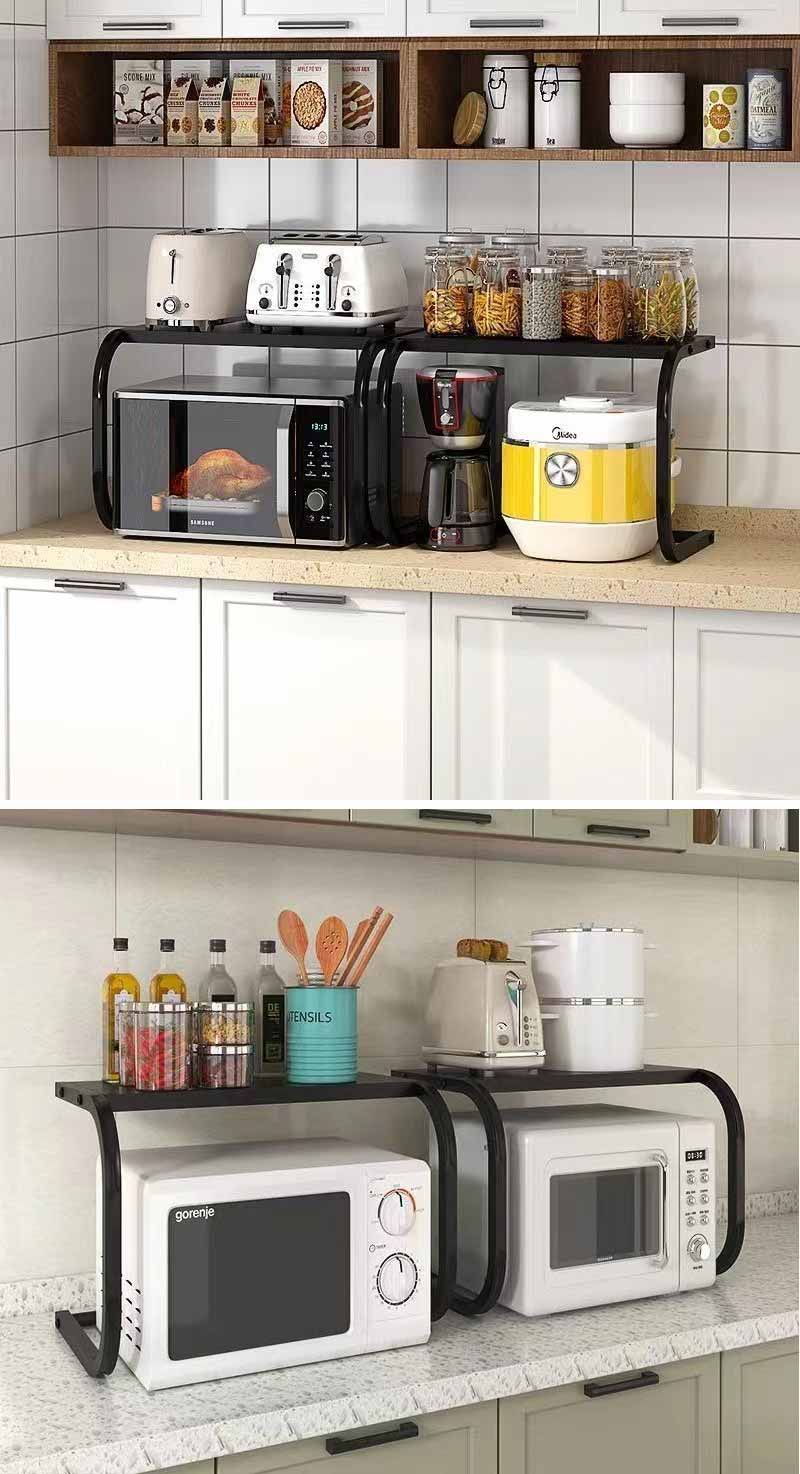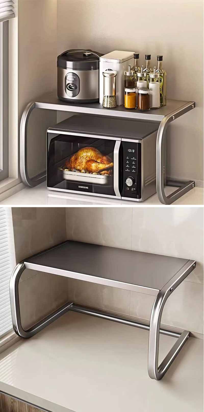 2025年最新の電子レンジラックは三角ブラケットを装備しました。従来の仕様より耐荷重能力を高めます。重い調理家電も置ける頑丈仕様です。電子レンジ、オーブントースター、コーヒーメーカーや炊飯器などのキッチン家電をひとまとめに収納できます