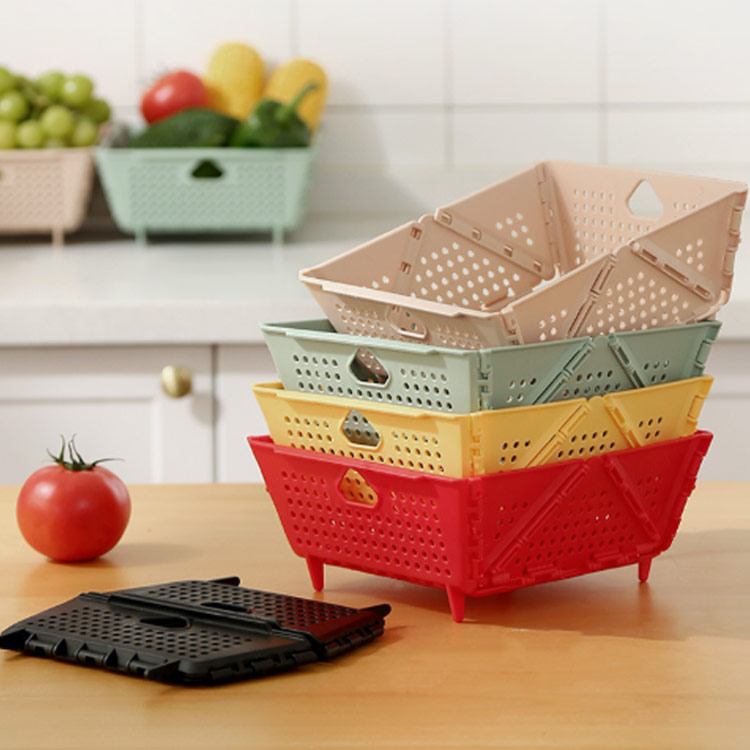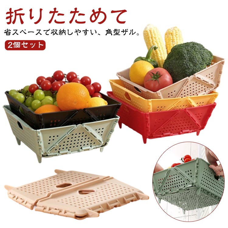 折りたためて省スペースで収納しやすい、角型ザル。【2個セット】