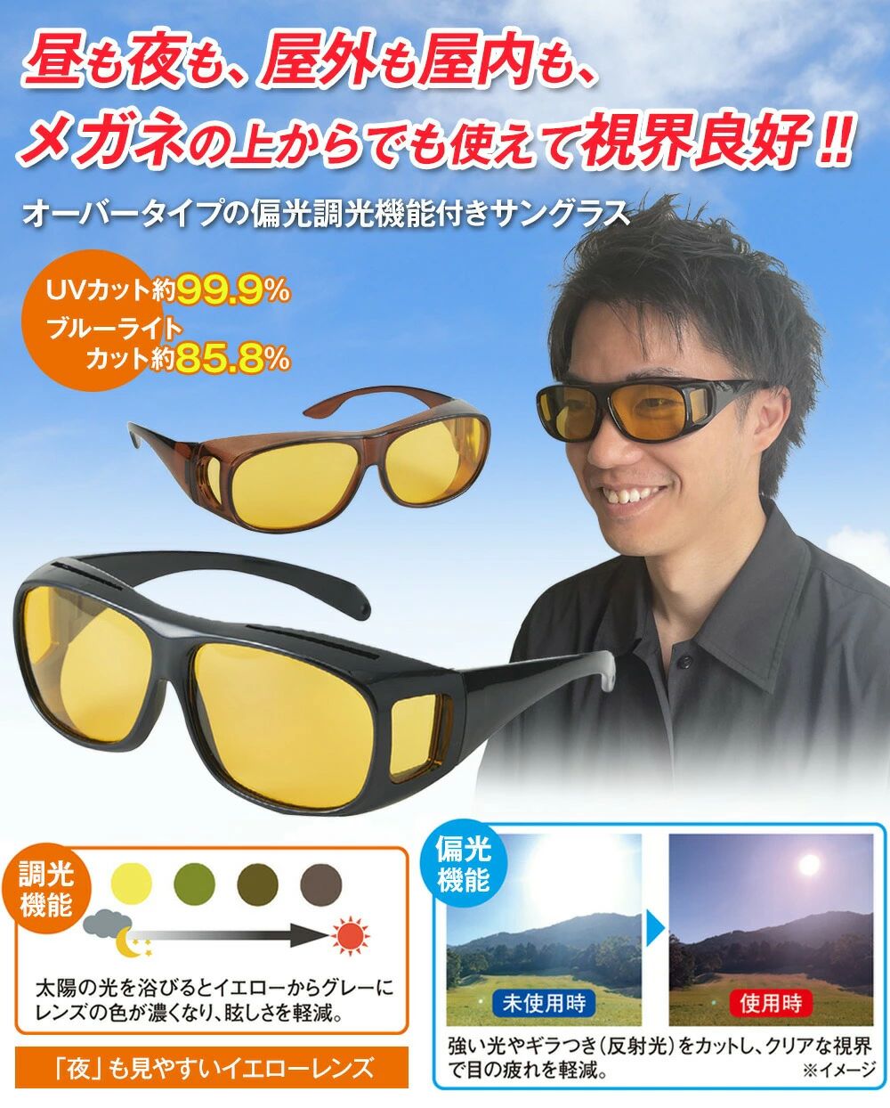 メガネの上からでも使えるオーバータイプの偏光&調光サングラス。