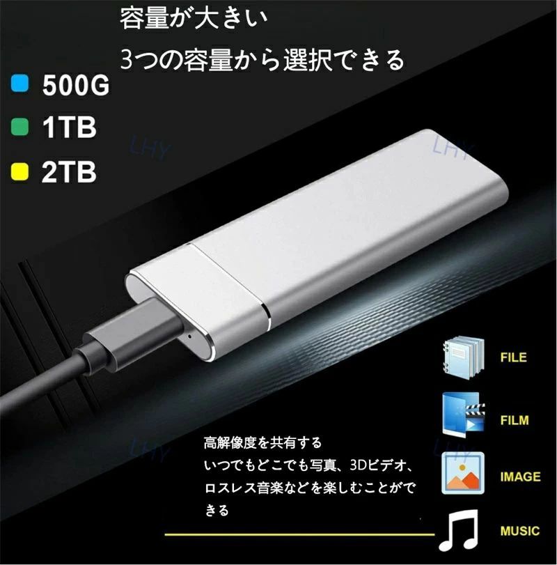 SSD 1TB 外付 ポータブルSSD 2TB-64Gアップグレード高速タイプ 外付けハードディス USB-A USB-C両対応 500GB 超薄型ポータブル 2TB USB3.1 T ハードディスク